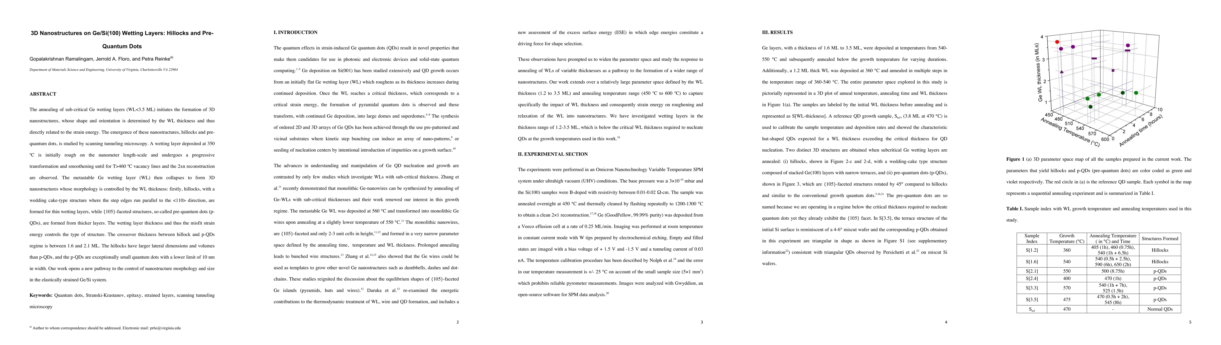 The annealing of sub-critical Ge wetting layers (WL<3.5 ML) initiates the formation of 3D nanostructures, whose shape and orientation is determined by the WL thickness and thus directly related to the strain energy. The emergence of these nanostructures, hillocks and pre-quantum dots, is studied by scanning tunneling microscopy. A wetting layer deposited at 350 C is initially rough on the nanometer length-scale and undergoes a progressive transformation and smoothening until for T>460 C vacancy lines and the 2xn reconstruction are observed. The metastable Ge wetting layer (WL) then collapses to form 3D nanostructures whose morphology is controlled by the WL thickness: firstly, hillocks, with a wedding cake-type structure where the step edges run parallel to the <110> direction, are formed for thin wetting layers, while {105}-faceted structures, so-called pre-quantum dots (p-QDs), are formed from thicker layers. The wetting layer thickness and thus the misfit strain energy controls the type of structure. The crossover thickness between hillock and p-QDs regime is between 1.6 and 2.1 ML. The hillocks have larger lateral dimensions and volumes than p-QDs, and the p-QDs are exceptionally small quantum dots with a lower limit of 10 nm in width. Our work opens a new pathway to the control of nanostructure morphology and size in the elastically strained Ge/Si system. Keywords: Quantum dots, Stranski-Krastanov, epitaxy, strained layers, scanning tunneling microscopy