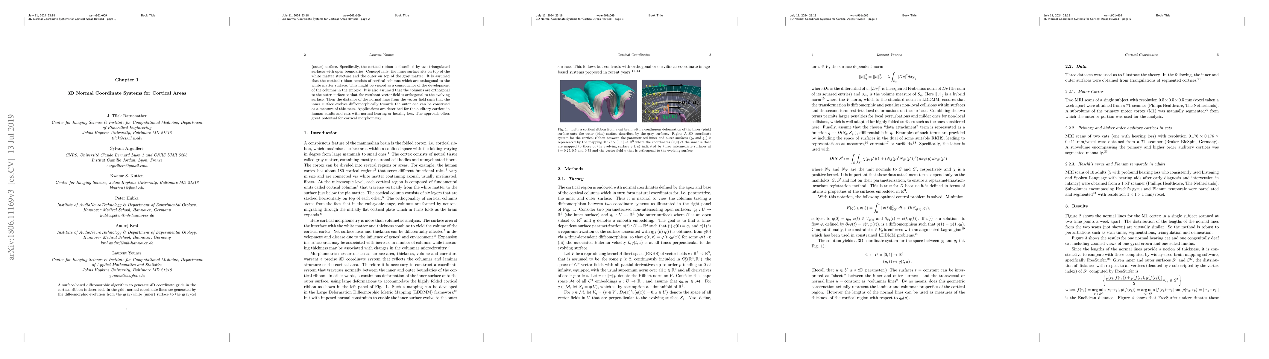 Researchers developed a method to create 3D coordinate grids in the cerebral cortex using diffeomorphic algorithms, enabling the measurement of cortical thickness and applications in auditory cortex studies.