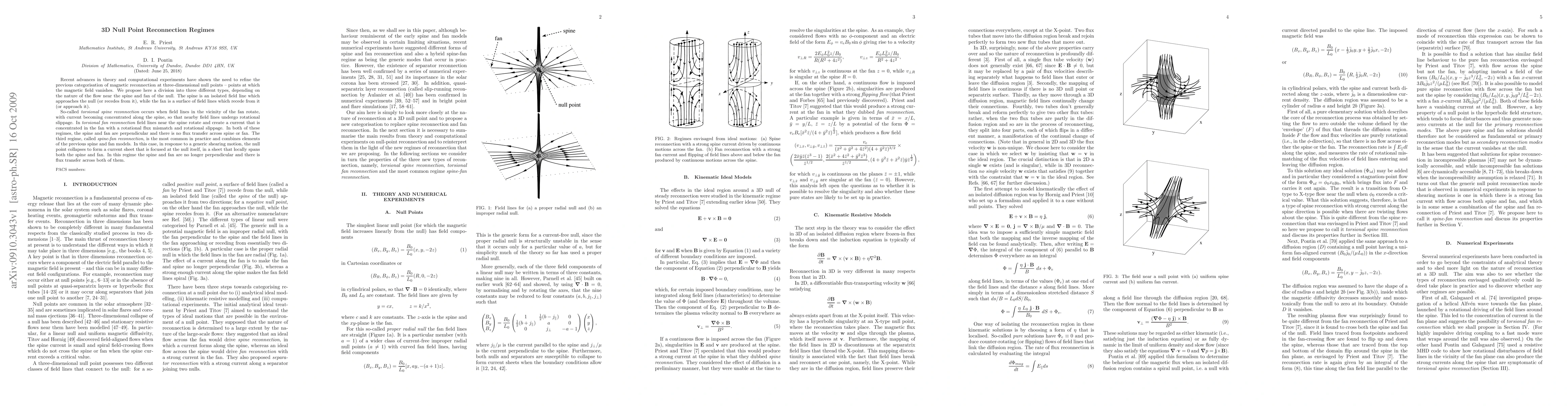 This paper refines the categorization of magnetic reconnection at three-dimensional null points, proposing three types: torsional spine reconnection, torsional fan reconnection, and spine-fan reconnection, each characterized by distinct flow behaviors and current distributions. The spine-fan reconnection regime is the most common, involving flux transfer across both the spine and fan.