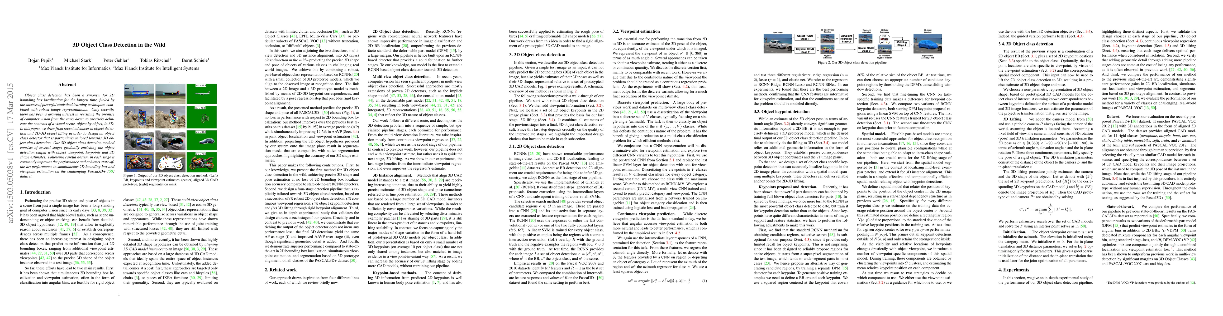 This paper proposes a novel method for 3D object class detection, leveraging recent advances in object detection and 2D-3D conversion. The method progressively refines 2D bounding box and viewpoint estimates to achieve state-of-the-art performance on the Pascal3D+ dataset.