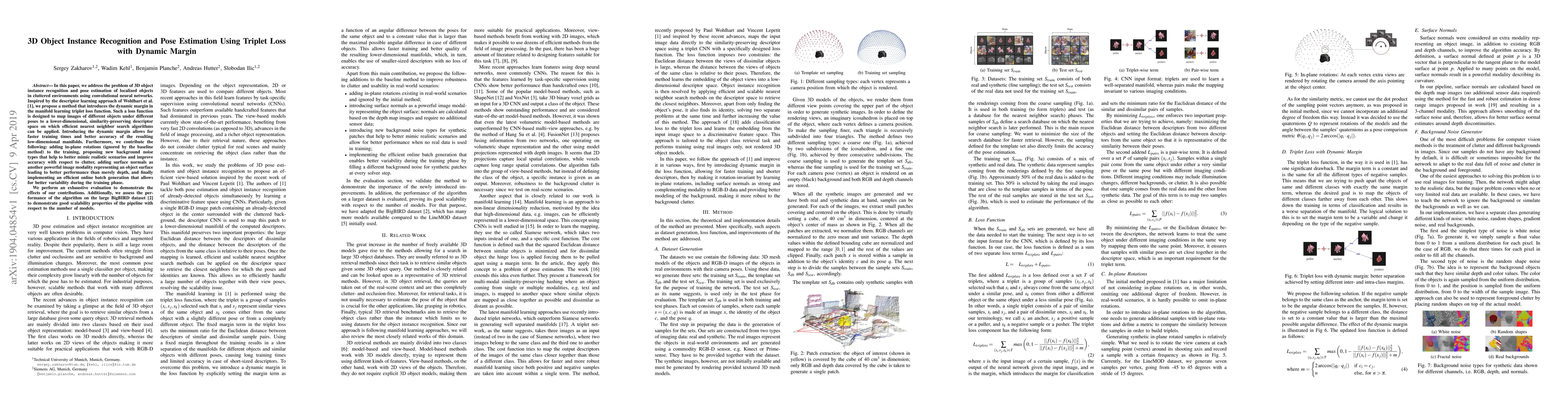 This paper proposes a method for 3D object instance recognition and pose estimation using convolutional neural networks with a dynamic margin in the manifold learning triplet loss function, achieving faster training times and better accuracy in cluttered environments.