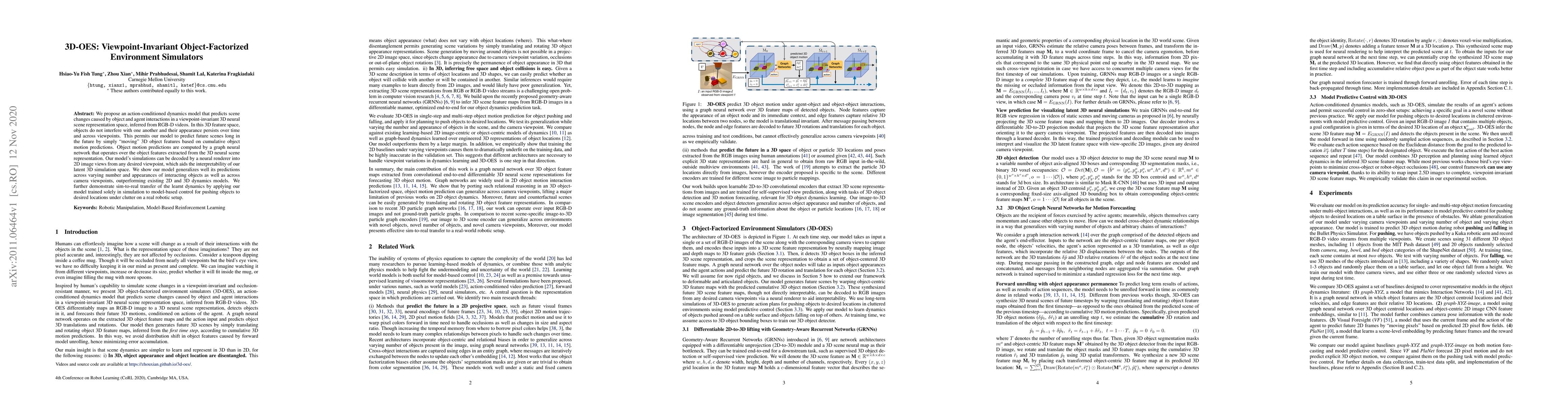 This research paper proposes an action-conditioned dynamics model that simulates 3D scenes with viewpoint-invariant object features, allowing for long-term predictions and generalization across varying objects and camera views.
