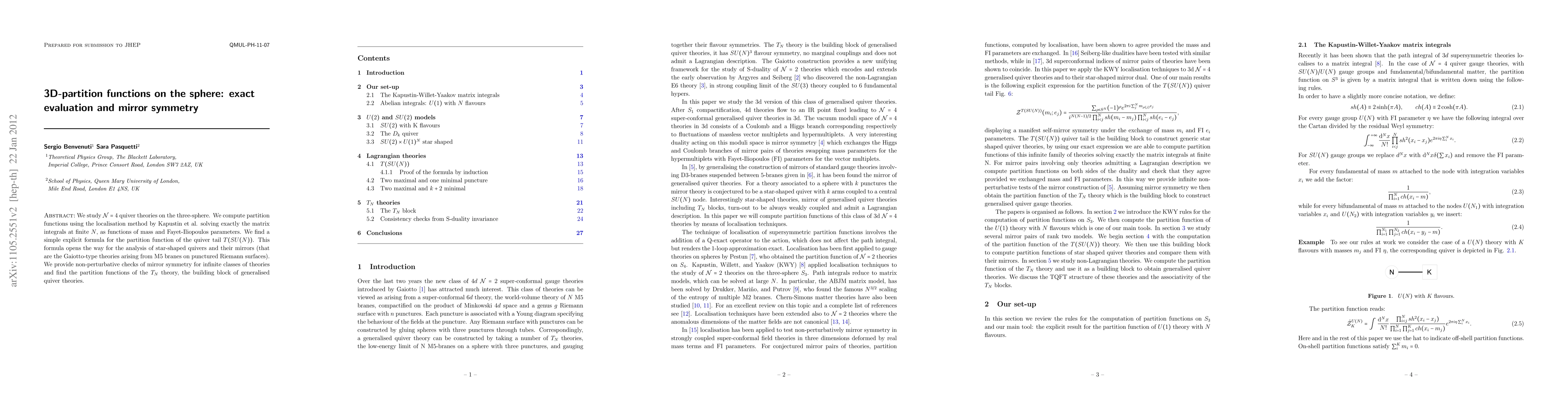 This paper computes exact partition functions for N=4 quiver theories on the three-sphere using the localisation method, revealing a simple formula for the partition function of the quiver tail T(SU(N)). The findings support non-perturbative checks of mirror symmetry and provide insights into star-shaped quivers and their mirror Gaiotto-type theories.