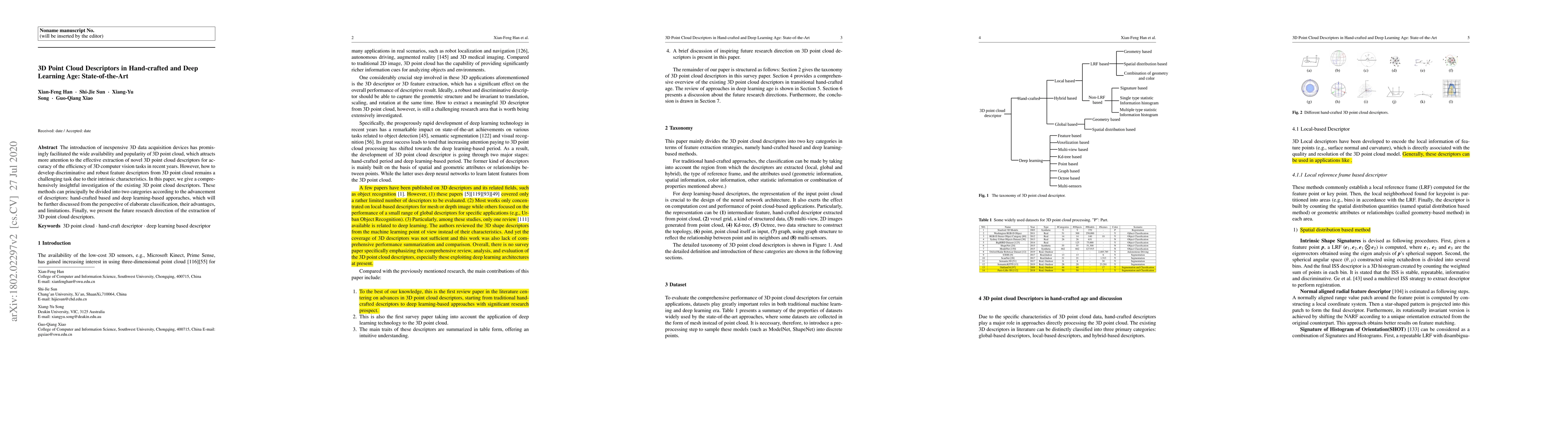 The introduction of inexpensive 3D data acquisition devices has promisingly facilitated the wide availability and popularity of 3D point cloud, which attracts more attention to the effective extraction of novel 3D point cloud descriptors for accuracy of the efficiency of 3D computer vision tasks in recent years. However, how to develop discriminative and robust feature descriptors from 3D point cloud remains a challenging task due to their intrinsic characteristics. In this paper, we give a comprehensively insightful investigation of the existing 3D point cloud descriptors. These methods can principally be divided into two categories according to the advancement of descriptors: hand-crafted based and deep learning-based apporaches, which will be further discussed from the perspective of elaborate classification, their advantages, and limitations. Finally, we present the future research direction of the extraction of 3D point cloud descriptors.