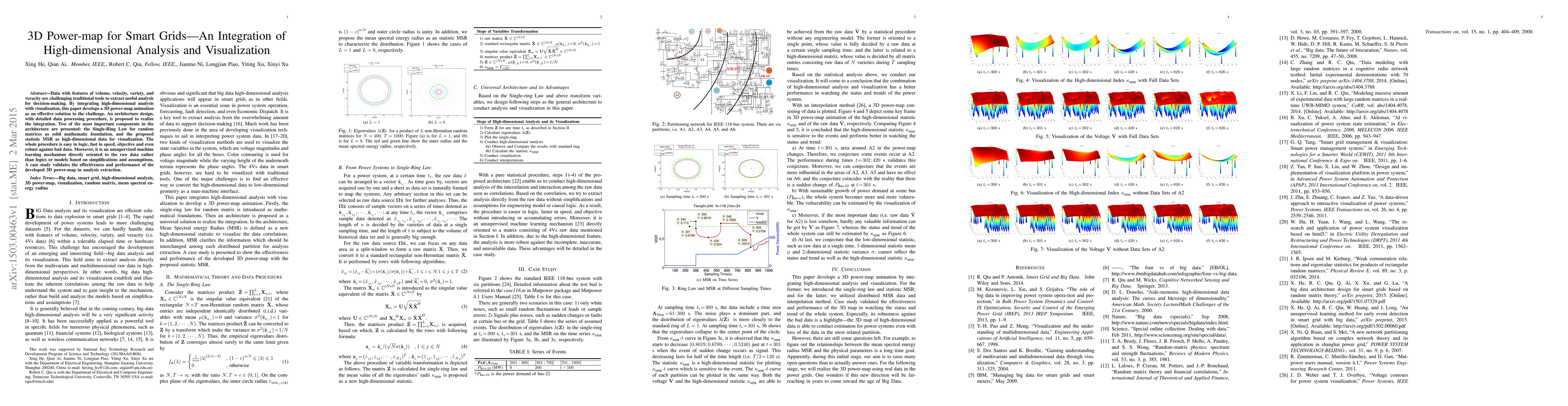 This paper introduces a 3D power-map animation for analyzing smart grid data, combining high-dimensional analysis and visualization to extract useful insights. It proposes an architecture design that uses the Single-Ring Law and statistical index MSR to visualize complex data.