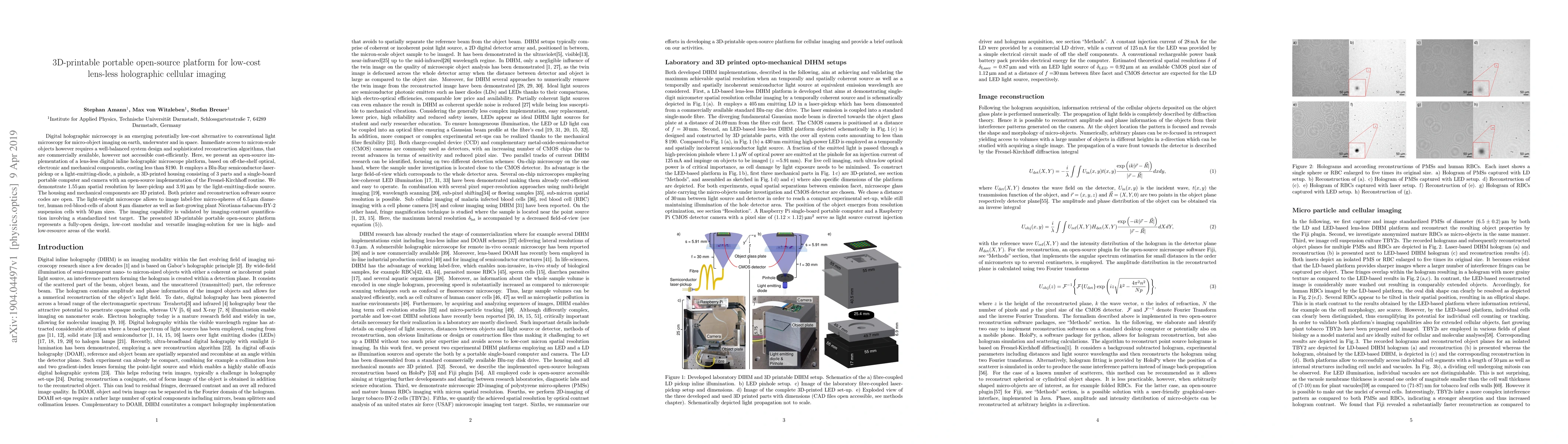 This paper presents an open-source, low-cost lens-less digital holographic microscope platform, utilizing 3D-printed components and off-the-shelf parts, to provide an affordable alternative to conventional microscopy. The system achieves micrometer-scale imaging resolution and is designed for use in diverse environments.