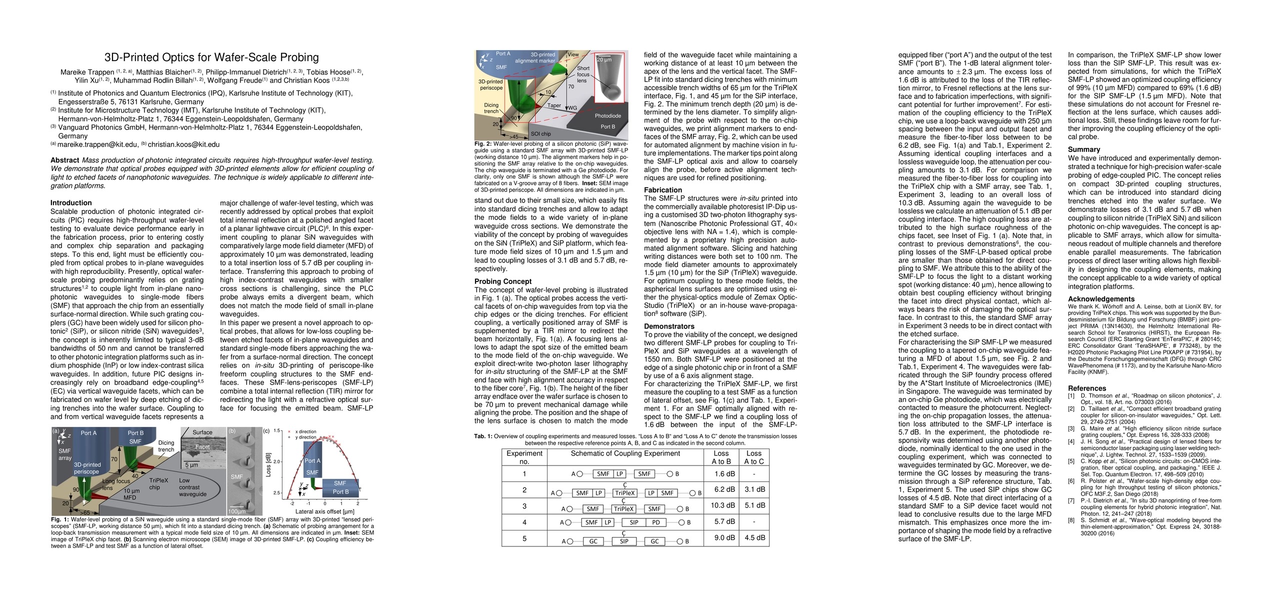 Summary: This research showcases 3D-printed optical probes that enable efficient light coupling for high-throughput wafer-level testing of photonic integrated circuits, demonstrating broad applicability across various integration platforms.