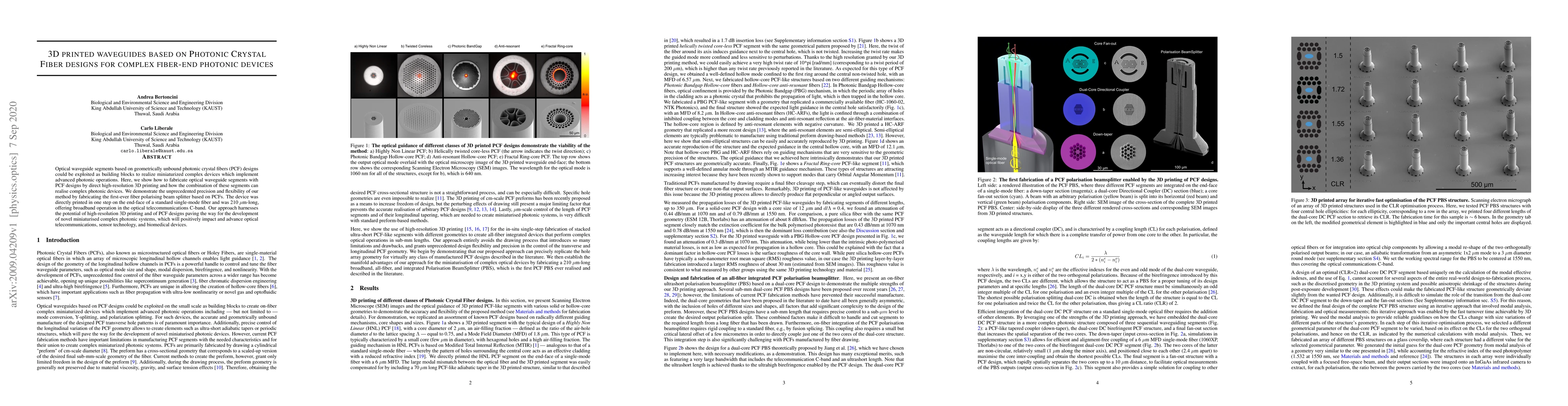 This paper demonstrates the fabrication of optical waveguide segments using high-resolution 3D printing of photonic crystal fiber (PCF) designs to build complex photonic devices. The authors successfully created a fiber polarising beam splitter directly printed in one step, showing precision and flexibility, and highlighting the potential for advancing optical telecommunications and sensor technology.