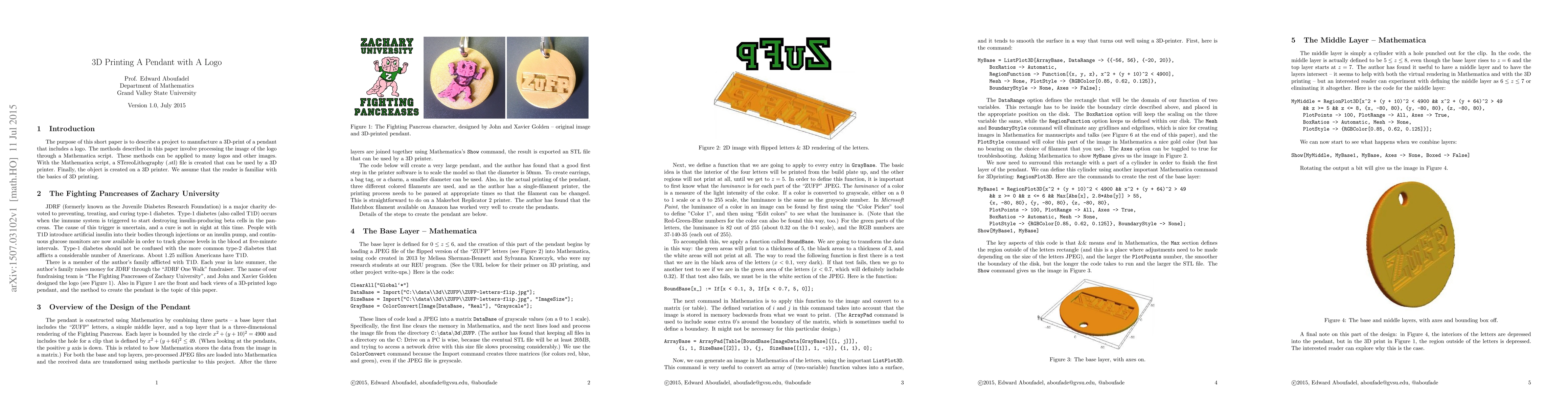 The purpose of this short paper is to describe a project to manufacture a 3D-print of a pendant that includes a logo. The methods described in this paper involve processing the image of the logo through a Mathematica script. These methods can be applied to many logos and other images. With the Mathematica script, a STereoLithography (.stl) file is created that can be used by a 3D printer. Finally, the object is created on a 3D printer. We assume that the reader is familiar with the basics of 3D printing.