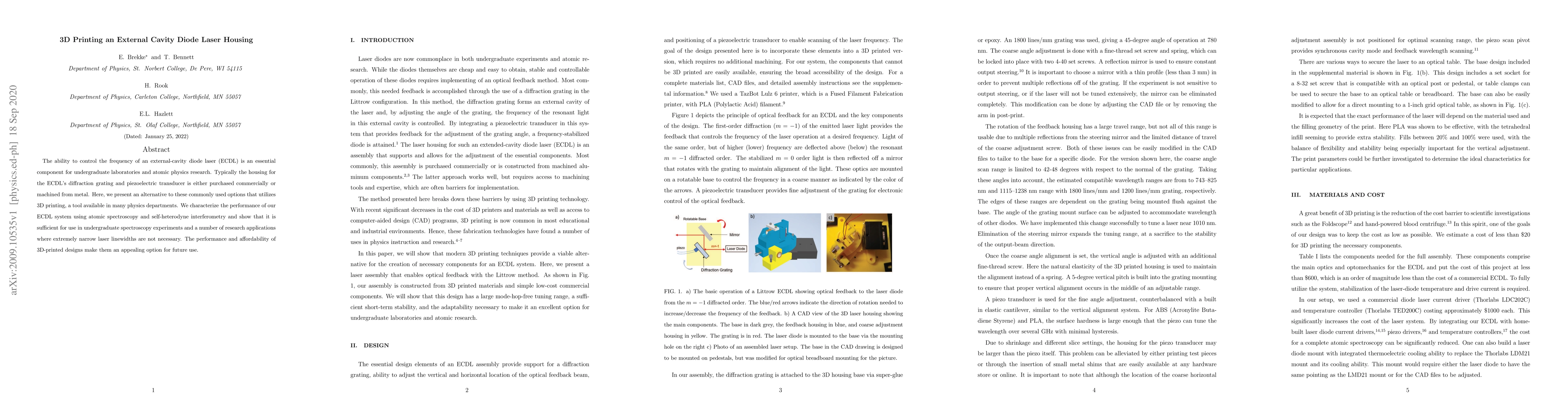 This research paper explores the use of 3D printing for creating housing for an external-cavity diode laser (ECDL), demonstrating its effectiveness for undergraduate labs and atomic physics research through spectroscopy and interferometry tests. The 3D-printed designs offer a cost-effective alternative to traditional methods.