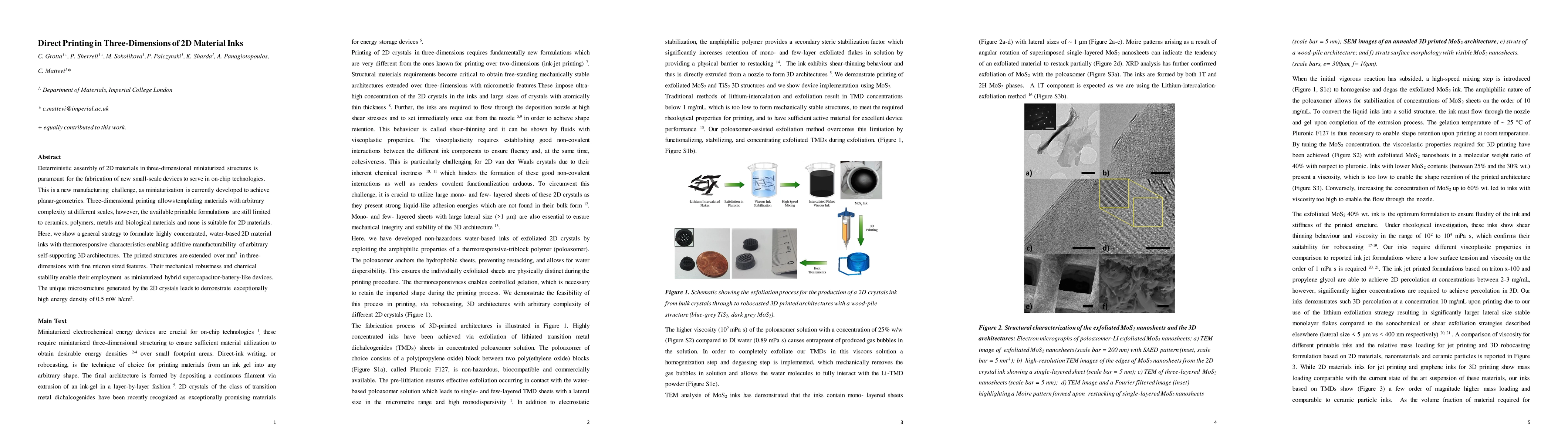 The development of a new process for formulating 3D printable inks from 2D crystals and the successful application of this method to create 3D architectures with high areal capacitance for supercapacitor applications.