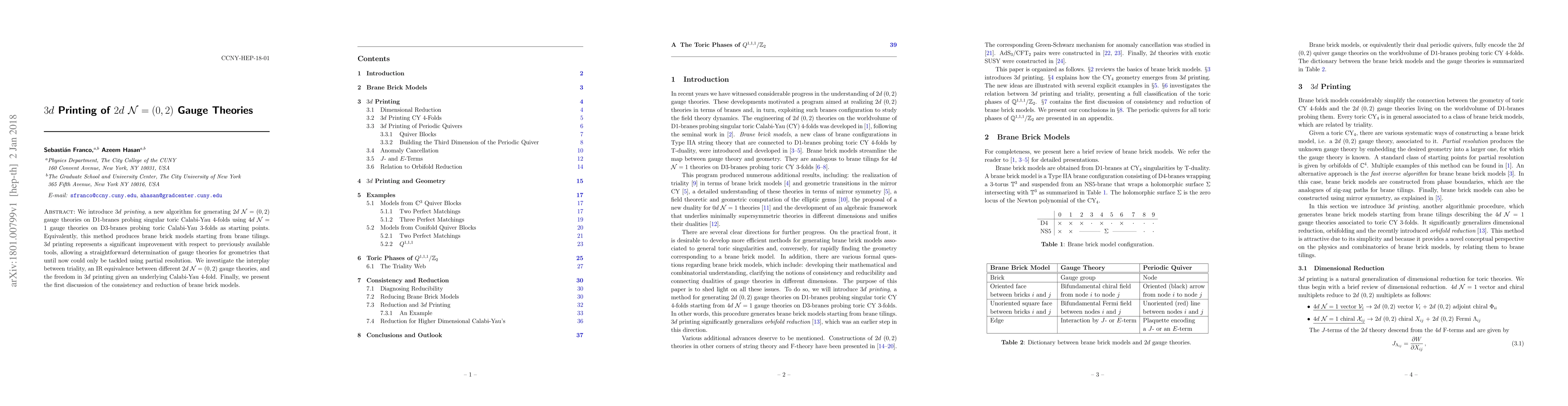 This paper introduces a novel algorithm called $3d$ printing for generating $2d$ $\mathcal{N}=(0,2)$ gauge theories on D1-branes using $4d$ $\mathcal{N}=1$ gauge theories on D3-branes, significantly improving the determination of gauge theories for previously intractable geometries. It also explores the triality and consistency of brane brick models derived from brane tilings.