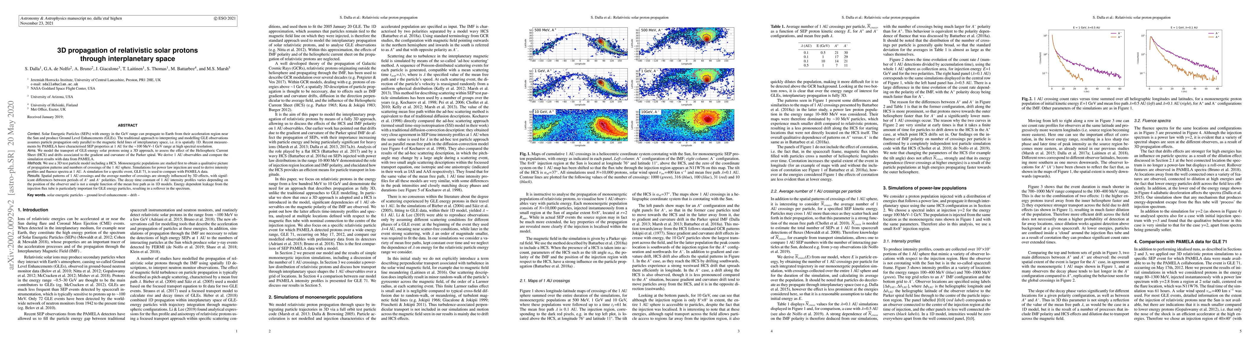 This paper models the 3D propagation of relativistic solar protons through interplanetary space, finding that 3D effects significantly influence the spatial patterns and intensity profiles of particles reaching 1 AU, especially under different IMF polarities. The study highlights the importance of energy-dependent leakage and the complexity of decay time constants compared to 1D models.