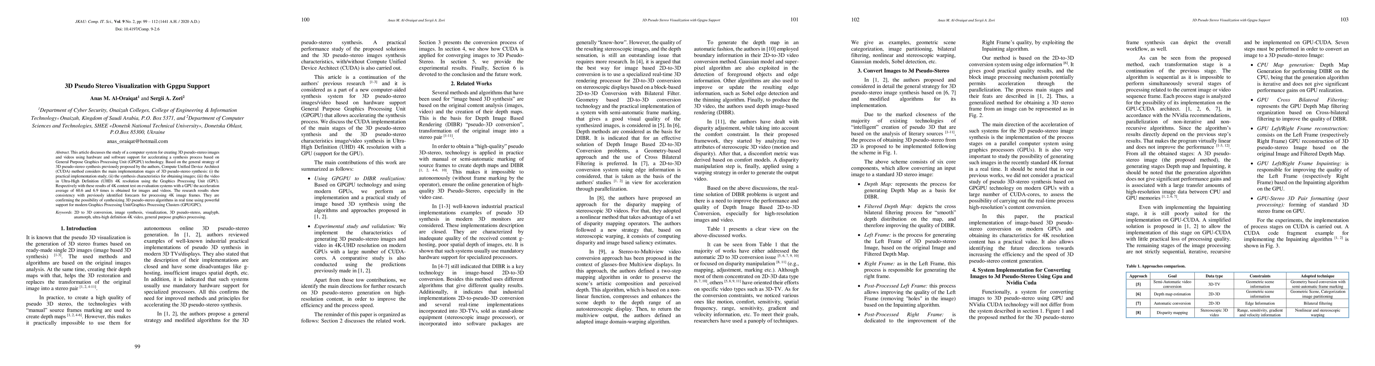 This paper explores a computer system for generating 3D pseudo-stereo images and videos using GPGPU technology, achieving significant acceleration in 4K UHD content synthesis with CUDA. The study confirms the feasibility of real-time 3D pseudo-stereo synthesis using modern GPU/GPC support.