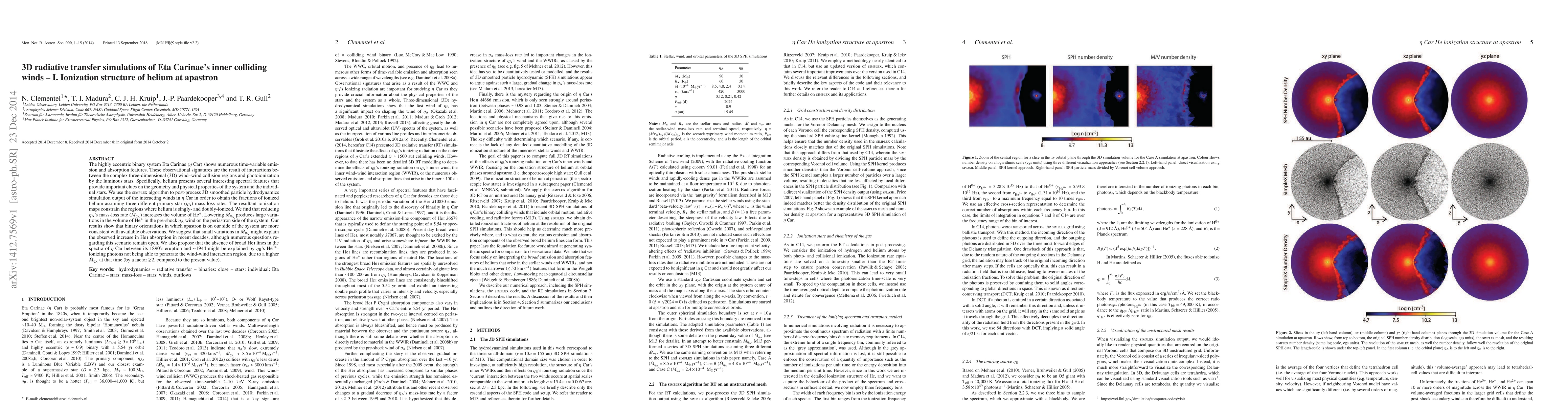 This paper investigates the ionization structure of helium in Eta Carinae's colliding winds using 3D radiative transfer simulations. The study finds that reducing the primary star's mass-loss rate increases the volume of singly ionized helium, suggesting that small variations in this rate may explain recent increases in HeI absorption, while higher rates in the past could explain the absence of broad HeI lines.