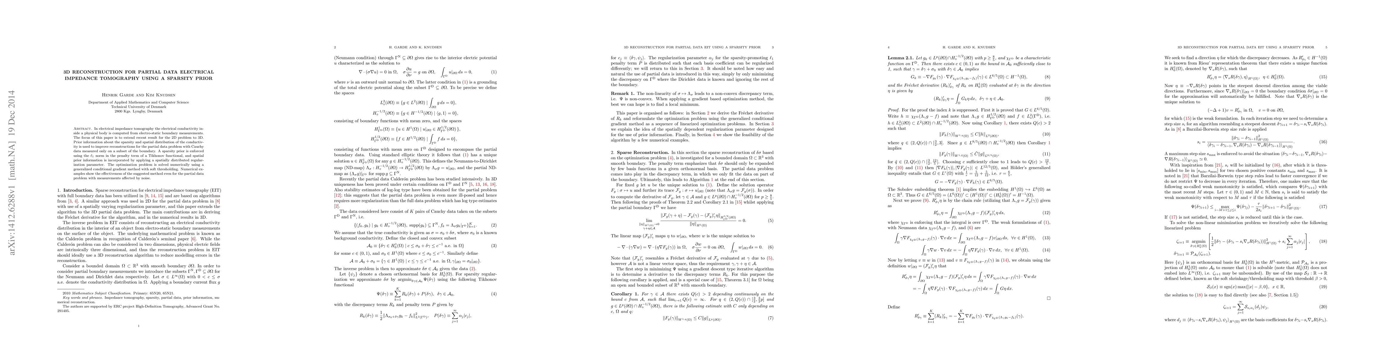 This paper proposes a method for 3D reconstruction in electrical impedance tomography using a sparsity prior to enhance reconstructions for partial data scenarios. The $\ell_1$ norm enforces sparsity, and spatially distributed regularization improves accuracy, with numerical results demonstrating effectiveness even with noisy measurements.