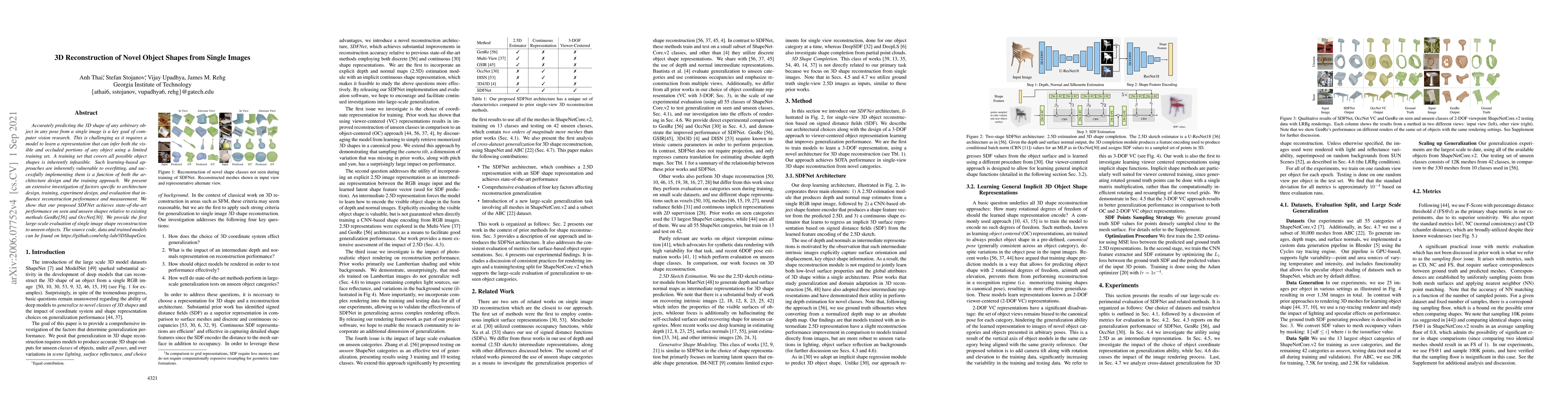 Accurately predicting the 3D shape of any arbitrary object in any pose from a single image is a key goal of computer vision research. This is challenging as it requires a model to learn a representation that can infer both the visible and occluded portions of any object using a limited training set. A training set that covers all possible object shapes is inherently infeasible. Such learning-based approaches are inherently vulnerable to overfitting, and successfully implementing them is a function of both the architecture design and the training approach. We present an extensive investigation of factors specific to architecture design, training, experiment design, and evaluation that influence reconstruction performance and measurement. We show that our proposed SDFNet achieves state-of-the-art performance on seen and unseen shapes relative to existing methods GenRe and OccNet. We provide the first large-scale evaluation of single image shape reconstruction to unseen objects. The source code, data and trained models can be found on https://github.com/rehg-lab/3DShapeGen.