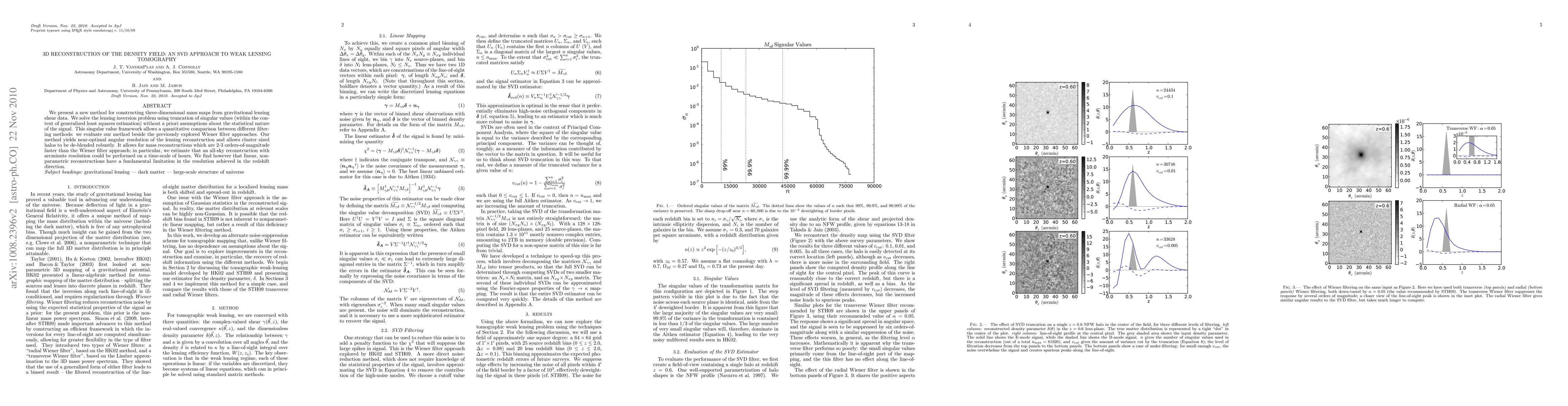 We present a new method for constructing three-dimensional mass maps from gravitational lensing shear data. We solve the lensing inversion problem using truncation of singular values (within the context of generalized least squares estimation) without a priori assumptions about the statistical nature of the signal. This singular value framework allows a quantitative comparison between different filtering methods: we evaluate our method beside the previously explored Wiener filter approaches. Our method yields near-optimal angular resolution of the lensing reconstruction and allows cluster sized halos to be de-blended robustly. It allows for mass reconstructions which are 2-3 orders-of-magnitude faster than the Wiener filter approach; in particular, we estimate that an all-sky reconstruction with arcminute resolution could be performed on a time-scale of hours. We find however that linear, non-parametric reconstructions have a fundamental limitation in the resolution achieved in the redshift direction.