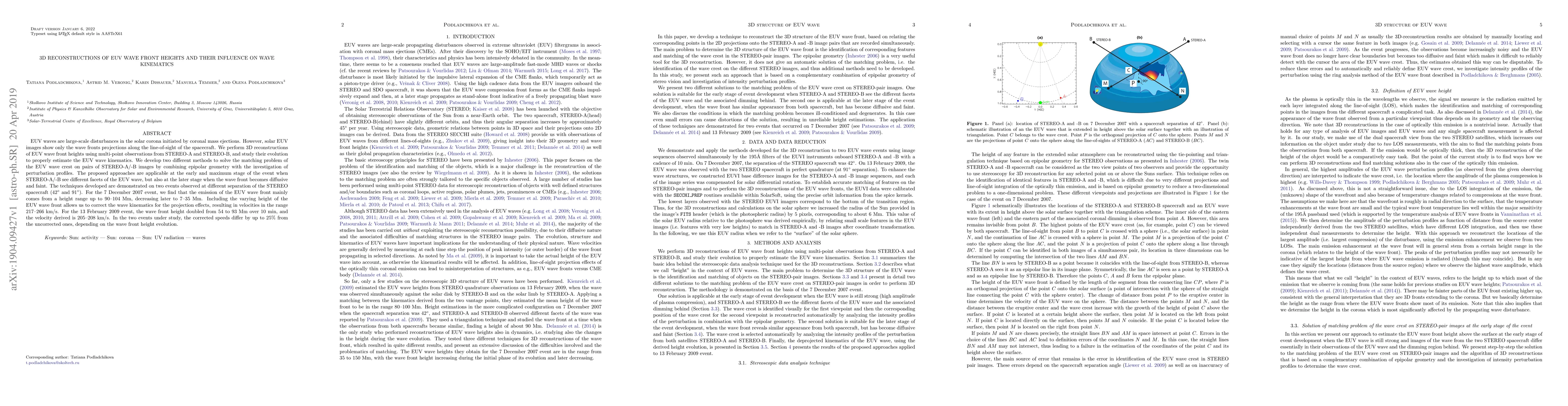 This paper presents 3D reconstructions of Extreme Ultraviolet (EUV) wave front heights using multi-point observations from STEREO-A and STEREO-B, and demonstrates the influence of these heights on wave kinematics. The study develops two methods to estimate the EUV wave front heights, revealing significant variations in wave front height and kinematics, which correct projection effects and yield more accurate velocities.