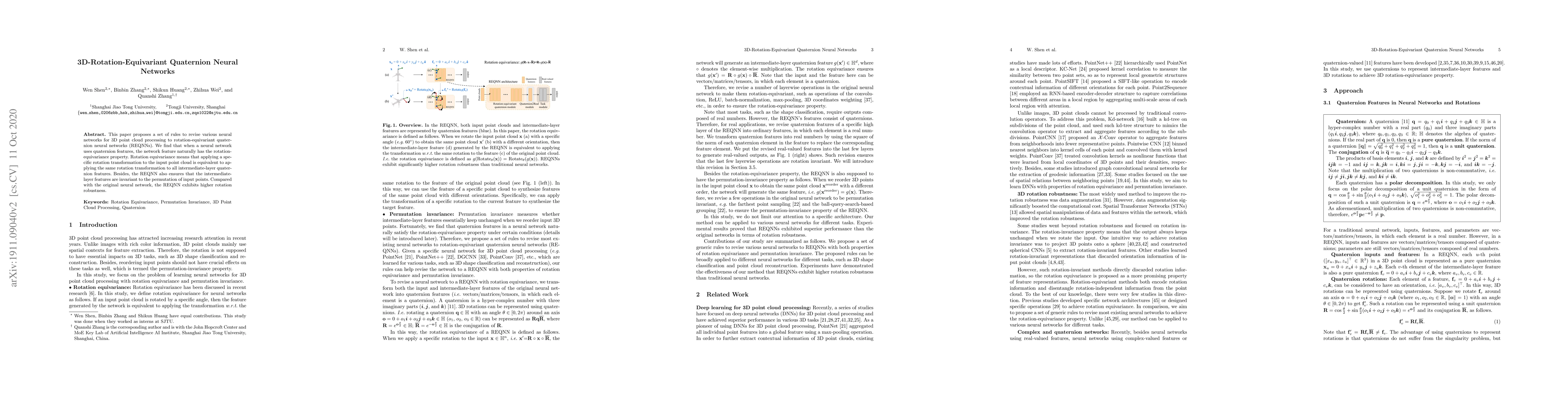 This paper introduces quaternion neural networks (REQNNs) for 3D point cloud processing that inherently exhibit rotation-equivariance, ensuring robustness to rotations and permutation invariance of input points compared to traditional networks. REQNNs outperform original networks by maintaining equivariance through quaternion features under specific conditions.