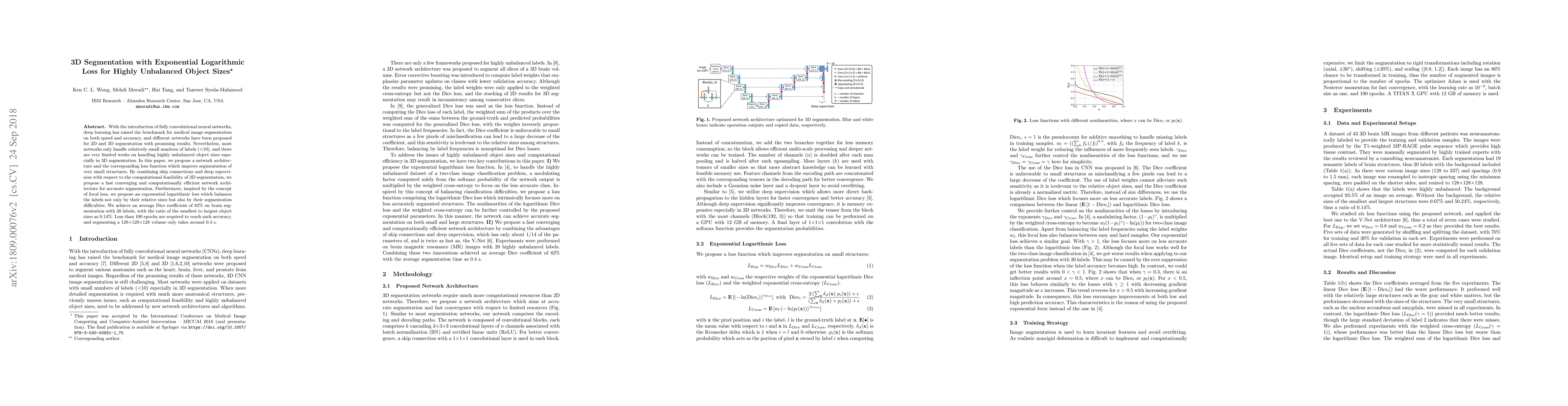 This paper proposes a new network architecture and loss function for 3D segmentation of highly unbalanced object sizes, achieving high accuracy with low computational cost.