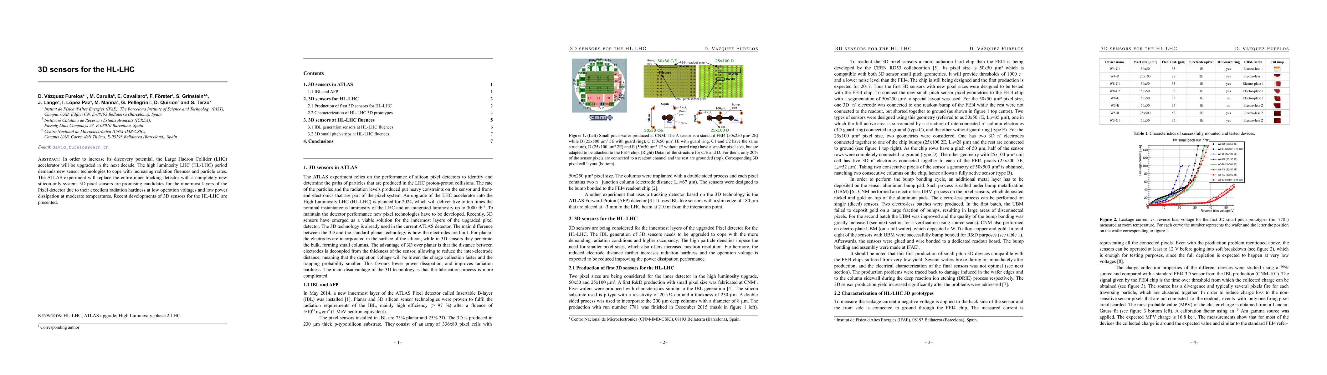 The paper discusses the development of 3D pixel sensors for the High Luminosity Large Hadron Collider (HL-LHC) to enhance its discovery potential, focusing on their radiation hardness, low operation voltages, and suitability for the innermost layers of the Pixel detector. Recent advancements in these sensors are highlighted as crucial for meeting the new sensor requirements.
