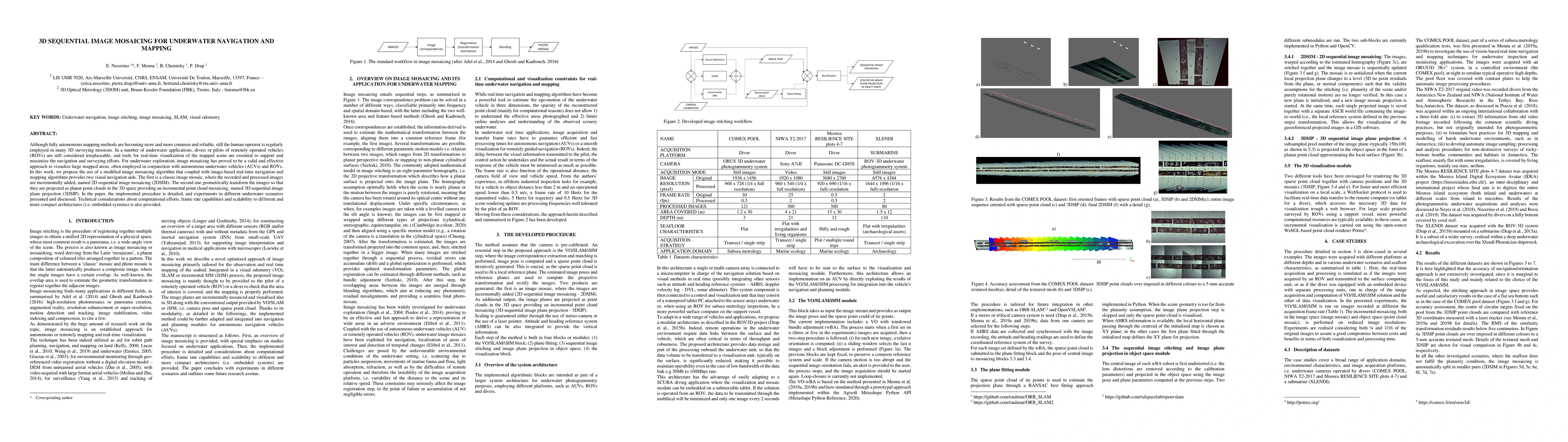 This paper presents a modified image mosaicing algorithm for underwater navigation and mapping, introducing two visual aids: 2D sequential image mosaicing (2DSIM) and 3D sequential image plane projection (3DSIP). Experiments and technical considerations on computational efficiency and scalability are discussed.