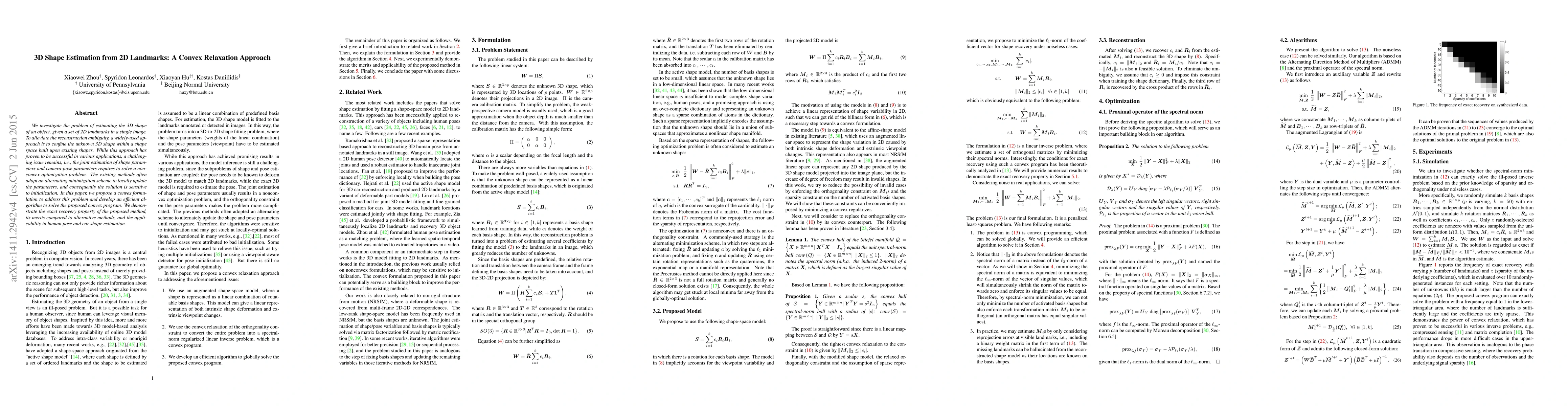 Researchers propose a convex relaxation approach to estimate 3D shape from 2D landmarks in a single image, addressing reconstruction ambiguity and improving initialization sensitivity.