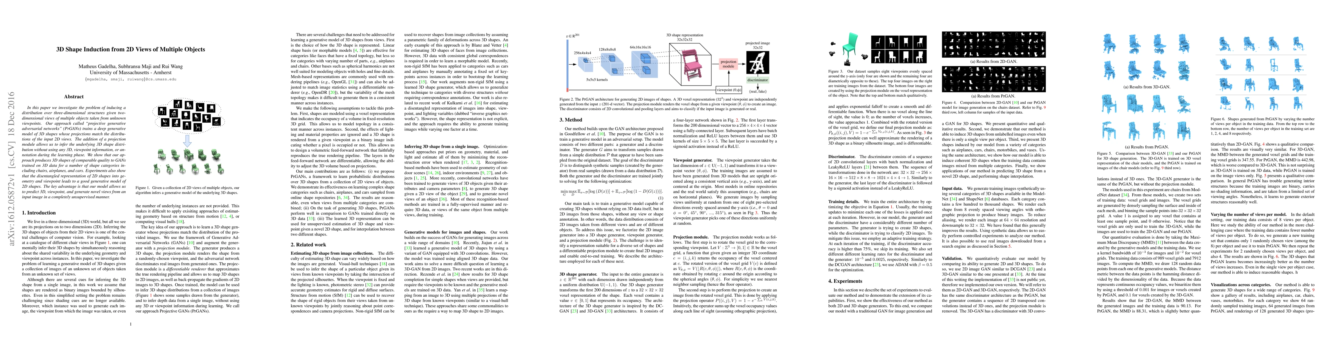 This paper proposes a "projective generative adversarial network" (PrGAN) to infer 3D shapes from 2D views without requiring 3D data or viewpoint information. The model demonstrates comparable 3D shape generation quality to GANs trained on 3D data and allows for unsupervised prediction of 3D shapes and generation of novel views.