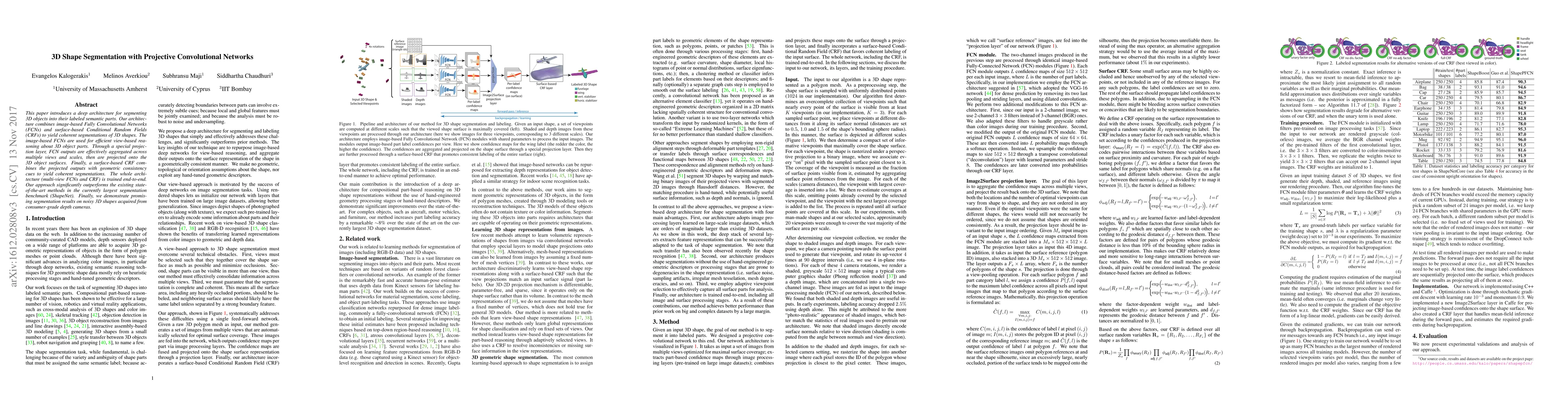 This paper presents a deep learning architecture combining image-based Fully Convolutional Networks and surface-based Conditional Random Fields for 3D shape segmentation, achieving superior results on the ShapeNet benchmark and demonstrating effectiveness on noisy 3D data from depth cameras.