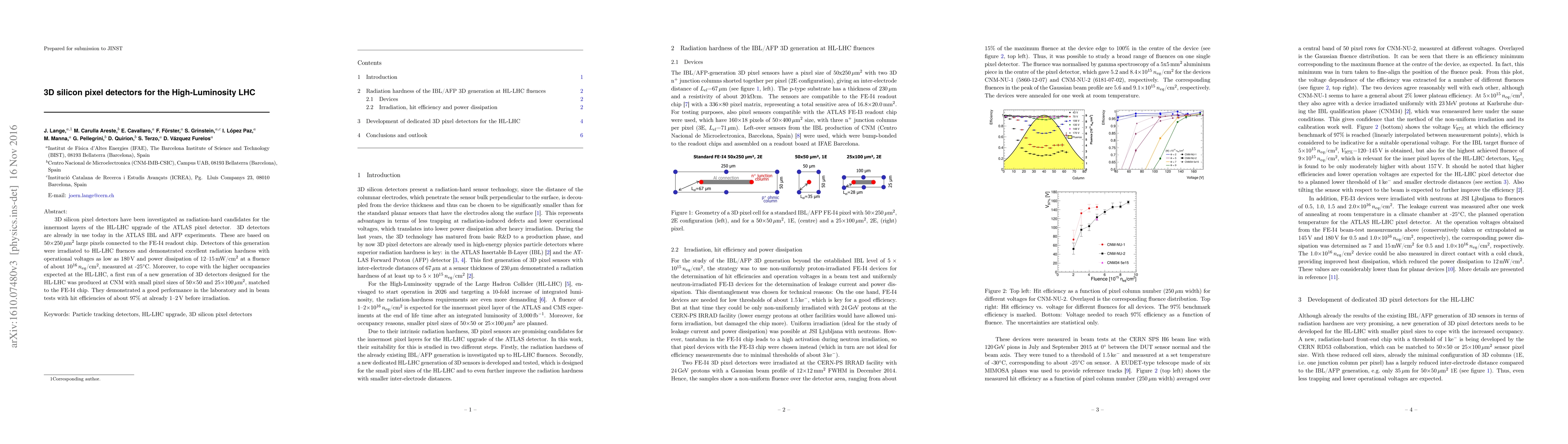 This paper investigates 3D silicon pixel detectors for the High-Luminosity LHC (HL-LHC) upgrade of the ATLAS pixel detector, demonstrating excellent radiation hardness and operational performance at low voltages. A new generation of these detectors with smaller pixel sizes showed high hit efficiencies in laboratory and beam tests.
