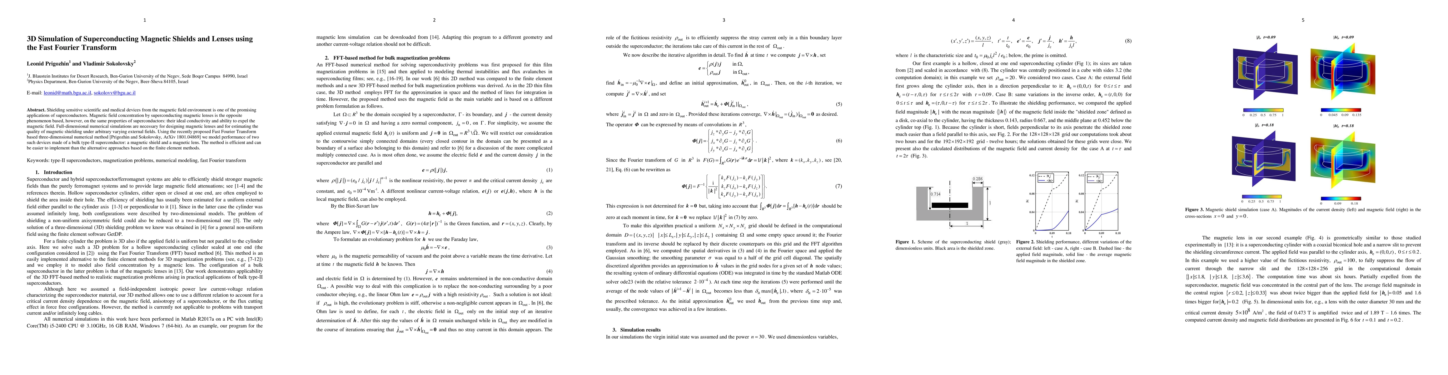 Shielding sensitive scientific and medical devices from the magnetic field environment is one of the promising applications of superconductors. Magnetic field concentration by superconducting magnetic lenses is the opposite phenomenon based, however, on the same properties of superconductors: their ideal conductivity and ability to expel the magnetic field. Full-dimensional numerical simulations are necessary for designing magnetic lenses and for estimating the quality of magnetic shielding under arbitrary varying external fields. Using the recently proposed Fast Fourier Transform based three-dimensional numerical method [Prigozhin and Sokolovsky, ArXiv 1801.04869] we model performance of two such devices made of a bulk type-II superconductor: a magnetic shield and a magnetic lens. The method is efficient and can be easier to implement than the alternative approaches based on the finite element methods.