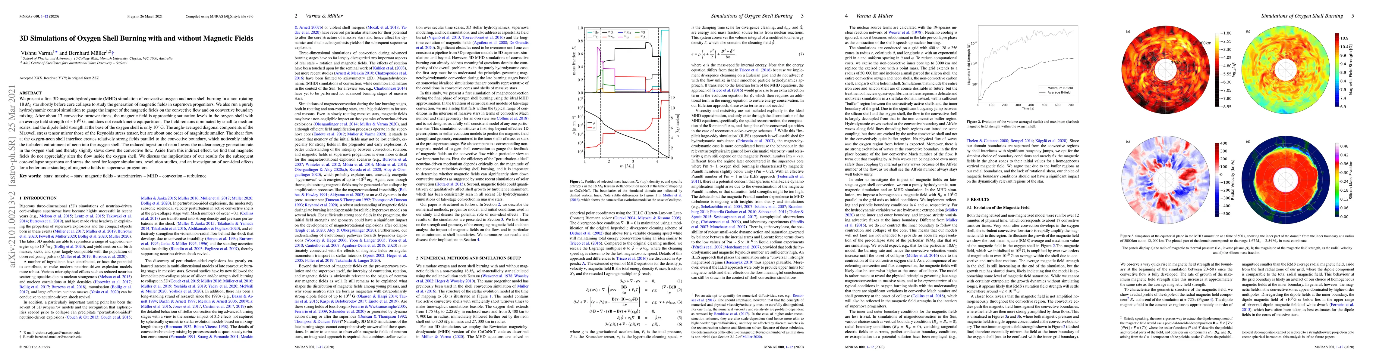 Researchers simulate 3D oxygen shell burning in a star with and without magnetic fields, finding that magnetic fields inhibit the turbulent entrainment of neon into the oxygen shell and slow down the convective flow.