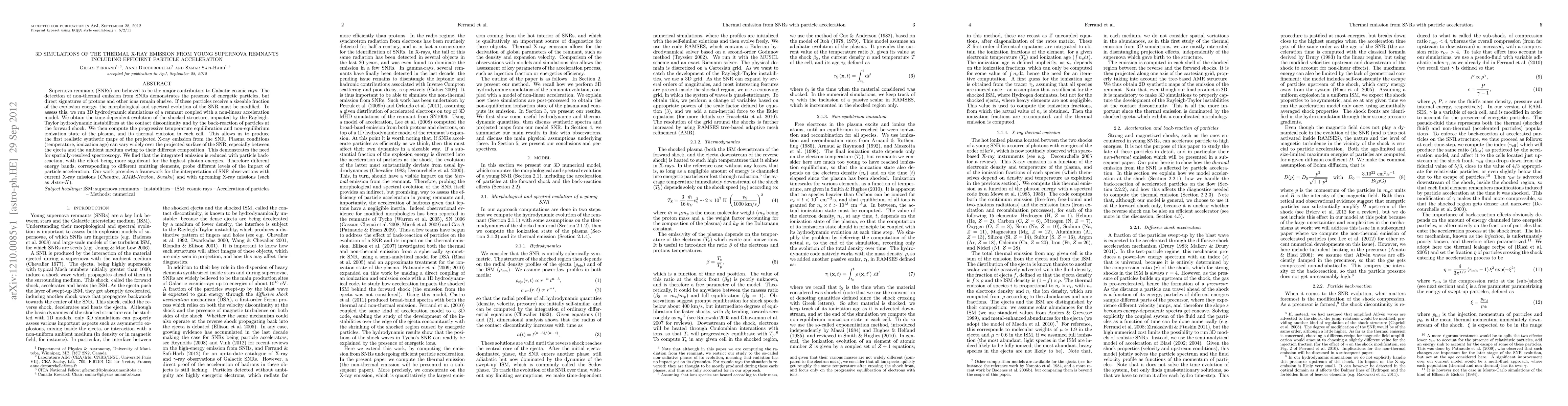 This paper presents 3D hydrodynamic simulations of young supernova remnants, incorporating particle acceleration models to study their thermal X-ray emission. The simulations reveal the impact of accelerated particles on the remnant's morphology and spectral evolution, highlighting the need for spatially-resolved X-ray spectroscopy to understand these effects.