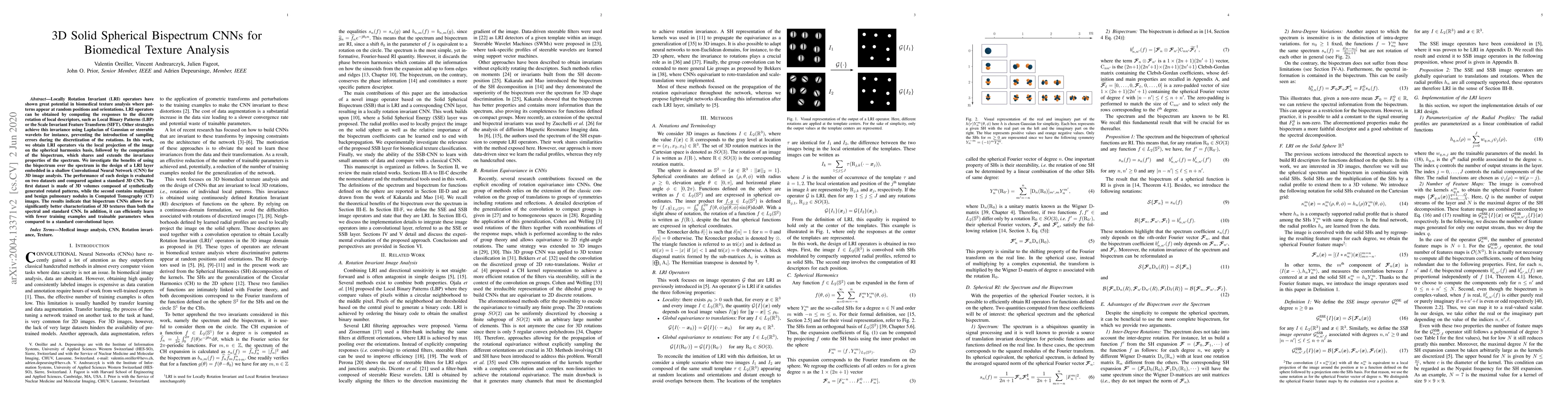 This research explores the use of Locally Rotation Invariant (LRI) operators based on the bispectrum for biomedical texture analysis in 3D images. The study proposes a novel LRI layer within a Convolutional Neural Network (CNN) that leverages the bispectrum for enhanced texture characterization, demonstrating superior performance on synthetic and real CT datasets compared to standard CNNs.