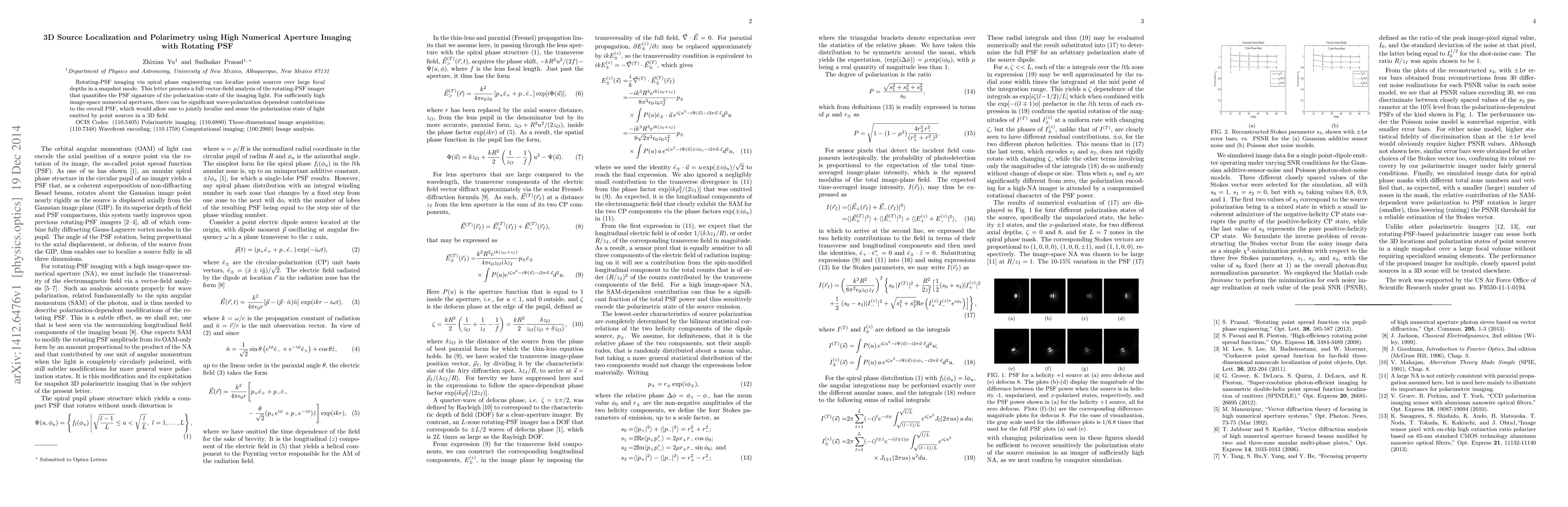 This paper presents a method for 3D source localization and polarimetry using high numerical aperture imaging with a rotating point spread function (PSF). It demonstrates that under certain conditions, the PSF signature can reveal wave-polarization dependent contributions, enabling the simultaneous localization and polarization state sensing of point sources.