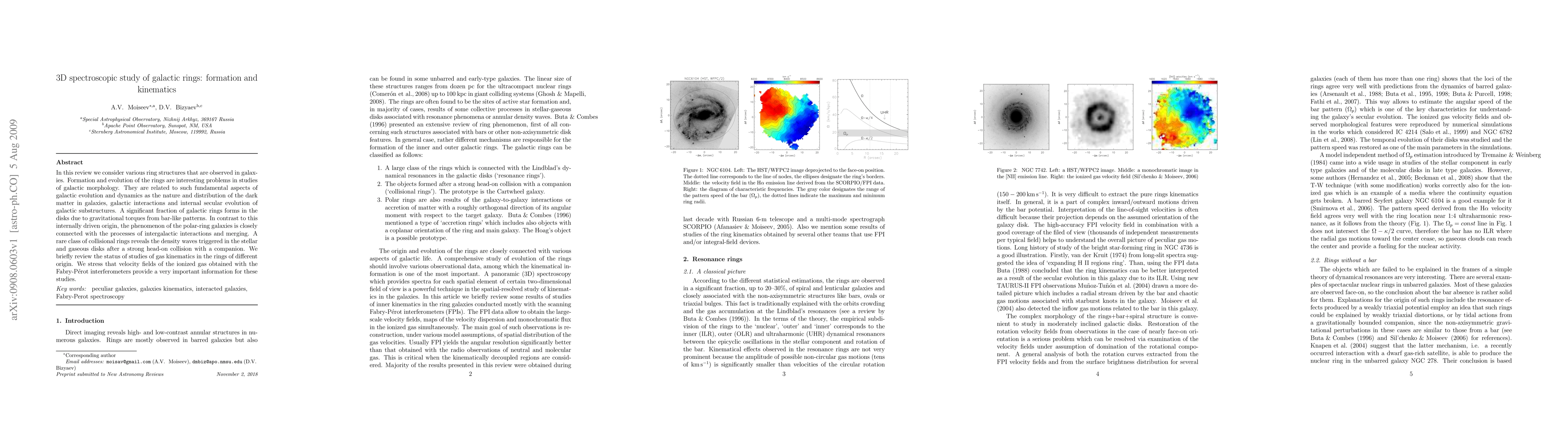 This paper reviews the formation and kinematics of various galactic rings, emphasizing their origins from bar-like patterns, intergalactic interactions, and collisions. It highlights the importance of 3D spectroscopic data from Fabry-Perot interferometers in understanding the gas dynamics within these rings.
