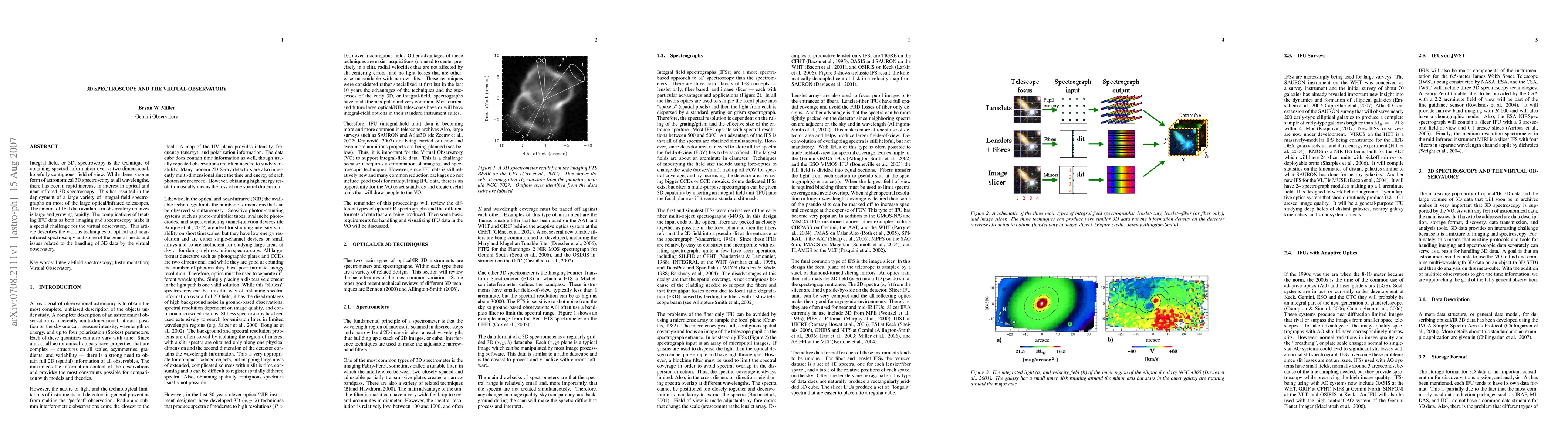 This paper discusses the growing use of integral field, or 3D, spectroscopy in optical and near-infrared astronomy, highlighting the challenges it poses for the virtual observatory due to its dual nature as both imaging and spectroscopy. It explores various techniques and the complexities of managing the expanding IFU data archives.