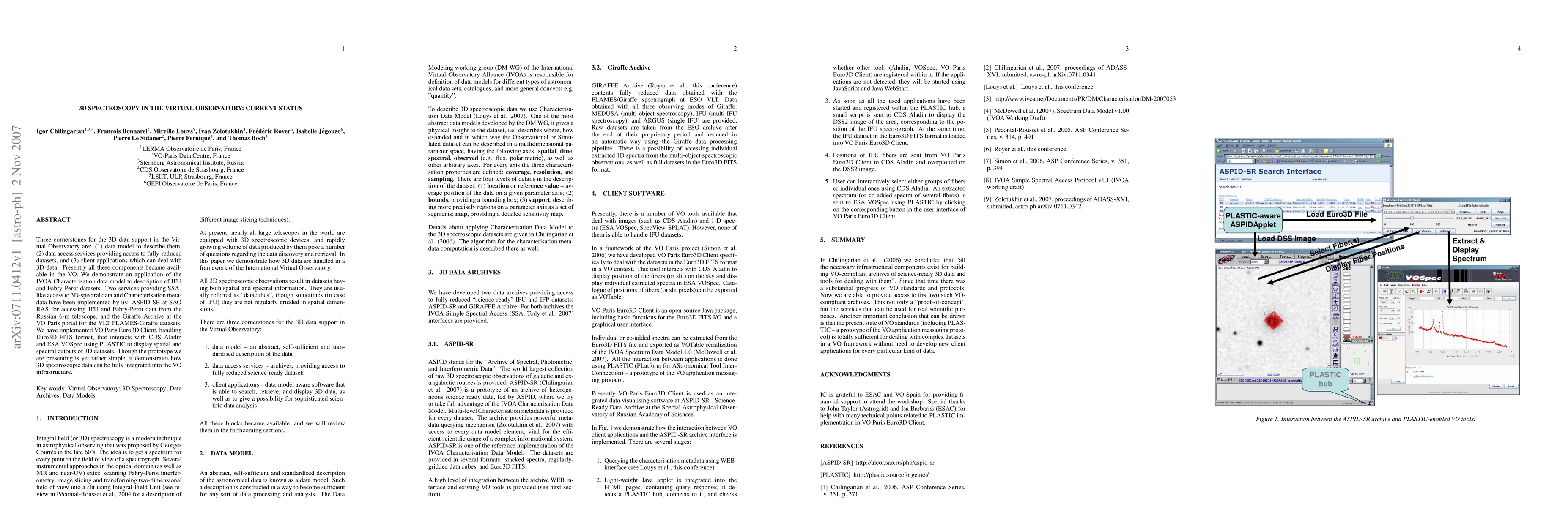 Three cornerstones for the 3D data support in the Virtual Observatory are: (1) data model to describe them, (2) data access services providing access to fully-reduced datasets, and (3) client applications which can deal with 3D data. Presently all these components became available in the VO. We demonstrate an application of the IVOA Characterisation data model to description of IFU and Fabry-Perot datasets. Two services providing SSA-like access to 3D-spectral data and Characterisation metadata have been implemented by us: ASPID-SR at SAO RAS for accessing IFU and Fabry-Perot data from the Russian 6-m telescope, and the Giraffe Archive at the VO Paris portal for the VLT FLAMES-Giraffe datasets. We have implemented VO Paris Euro3D Client, handling Euro3D FITS format, that interacts with CDS Aladin and ESA VOSpec using PLASTIC to display spatial and spectral cutouts of 3D datasets. Though the prototype we are presenting is yet rather simple, it demonstrates how 3D spectroscopic data can be fully integrated into the VO infrastructure.