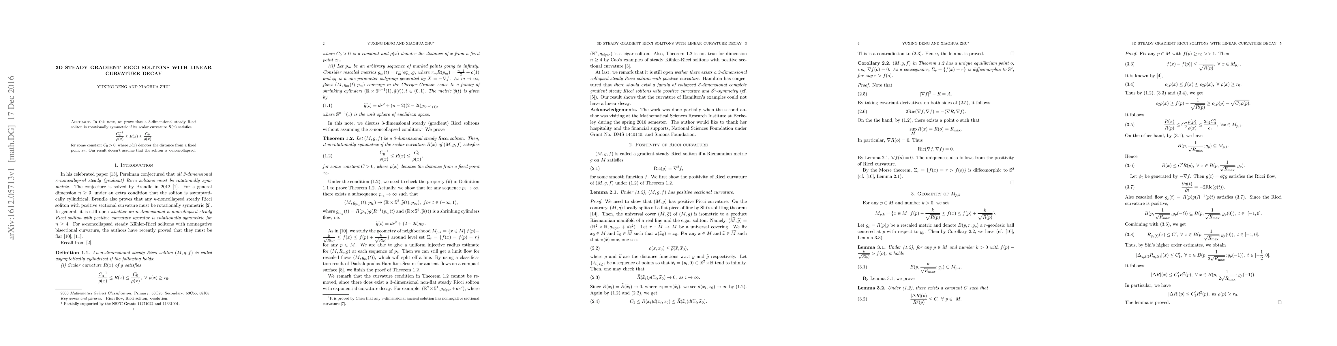 A 3D steady Ricci soliton is rotationally symmetric if its scalar curvature $R(x)$ satisfies a specific inequality involving the distance from a fixed point, regardless of whether it is $ heta$-noncollapsed.