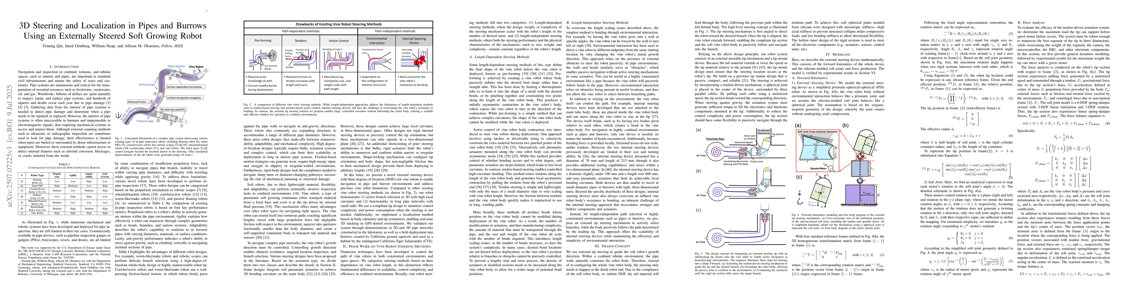 Navigation and inspection in confined environments, such as tunnels and pipes, pose significant challenges for existing robots due to limitations in maneuverability and adaptability to varying geometries. Vine robots, which are soft growing continuum robots that extend their length through soft material eversion at their tip, offer unique advantages due to their ability to navigate tight spaces, adapt to complex paths, and minimize friction. However, existing vine robot designs struggle with navigation in manmade and natural passageways, with branches and sharp 3D turns. In this letter, we introduce a steerable vine robot specifically designed for pipe and burrow environments. The robot features a simple tubular body and an external tip mount that steers the vine robot in three degrees of freedom by changing the growth direction and, when necessary, bracing against the wall of the pipe or burrow. Our external tip steering approach enables: (1) active branch selection in 3D space with a maximum steerable angle of 51.7{\deg}, (2) navigation of pipe networks with radii as small as 2.5 cm, (3) a compliant tip enabling navigation of sharp turns, and (4) real-time 3D localization in GPS-denied environments using tip-mounted sensors and continuum body odometry. We describe the forward kinematics, characterize steerability, and demonstrate the system in a 3D pipe system as well as a natural animal burrow.