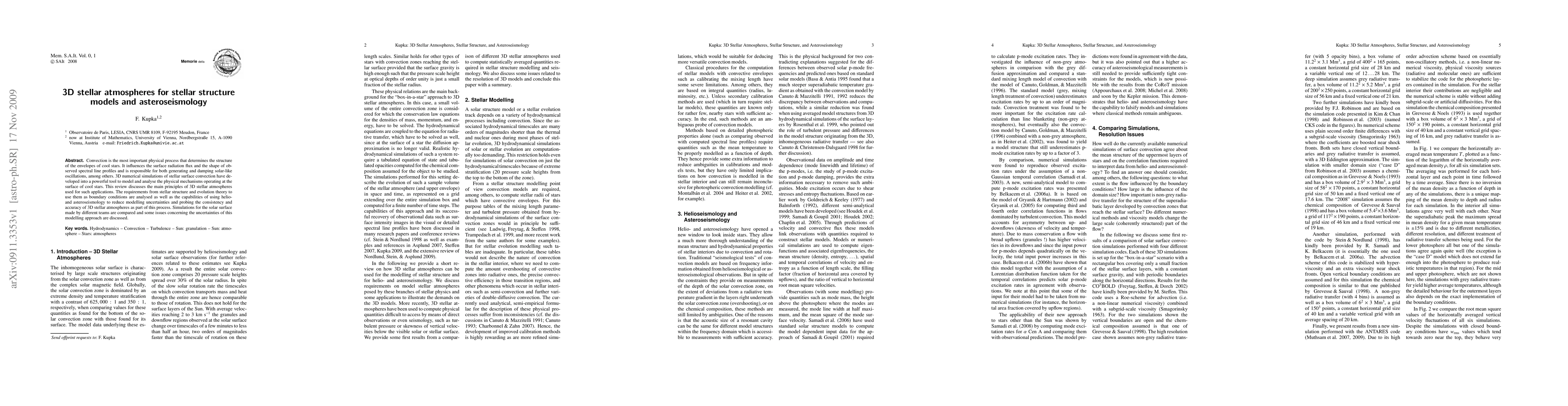 This paper reviews the principles of 3D stellar atmospheres used to model convection in cool stars, emphasizing their role in stellar structure and asteroseismology. It discusses the application of helio- and asteroseismology to validate and refine these models, comparing solar simulations from different teams and addressing associated uncertainties.