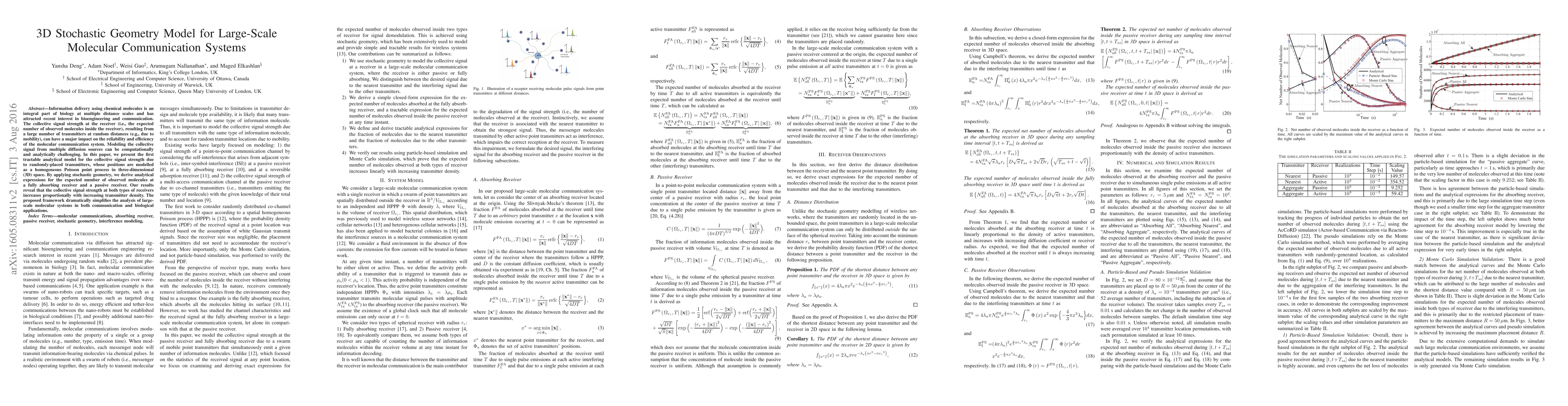 This paper introduces a 3D stochastic geometry model to analyze the collective signal strength in large-scale molecular communication systems, using a homogeneous Poisson point process to model random transmitter positions. It provides analytical expressions for expected molecule counts at both fully absorbing and passive receivers, revealing proportional increases in signal strength with higher transmitter density.