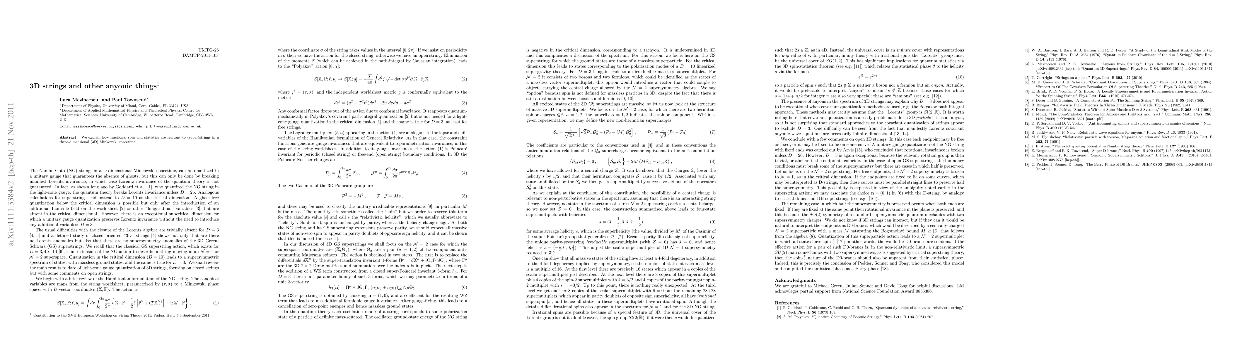 We explain how fractional spin and statistics are relevant to (super)strings in a three-dimensional (3D) Minkowski spacetime.