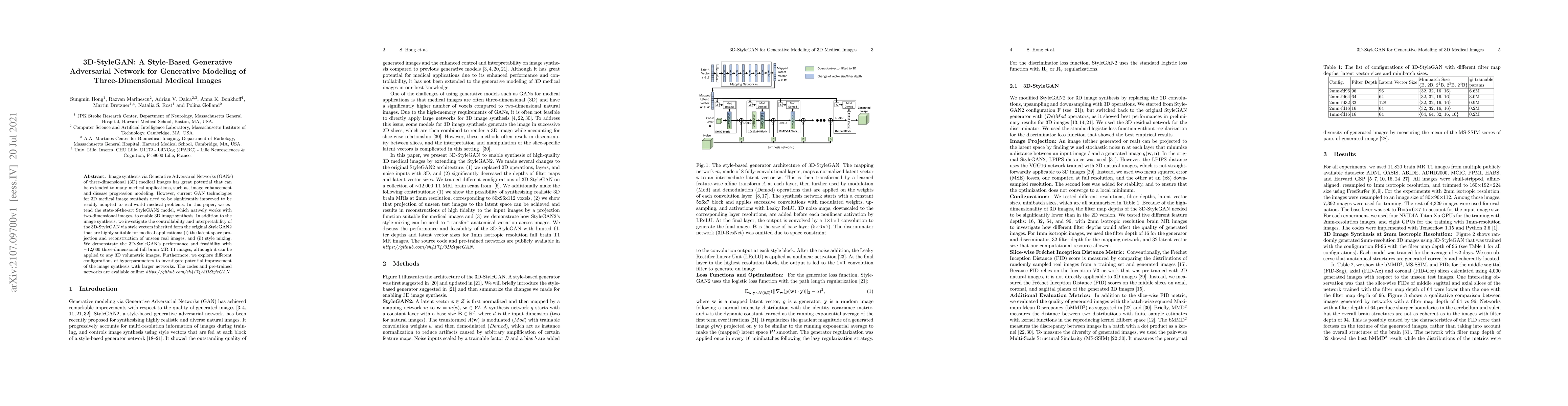 This paper extends StyleGAN2 to synthesize 3D medical images, focusing on brain MR T1 images, and explores the model's controllability and interpretability through style vectors. The authors demonstrate the model's performance and feasibility, making codes and pre-trained networks publicly available for broader medical applications.
