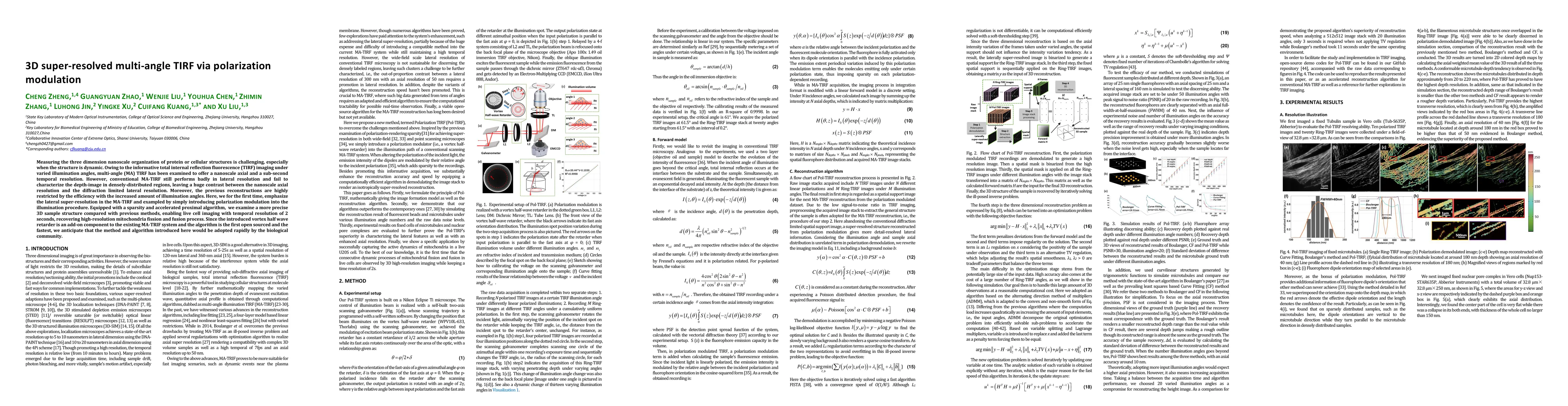 This study introduces a method to improve lateral resolution in multi-angle TIRF imaging using polarization modulation, enabling live cell imaging with high temporal resolution and improved 3D structure reconstruction.