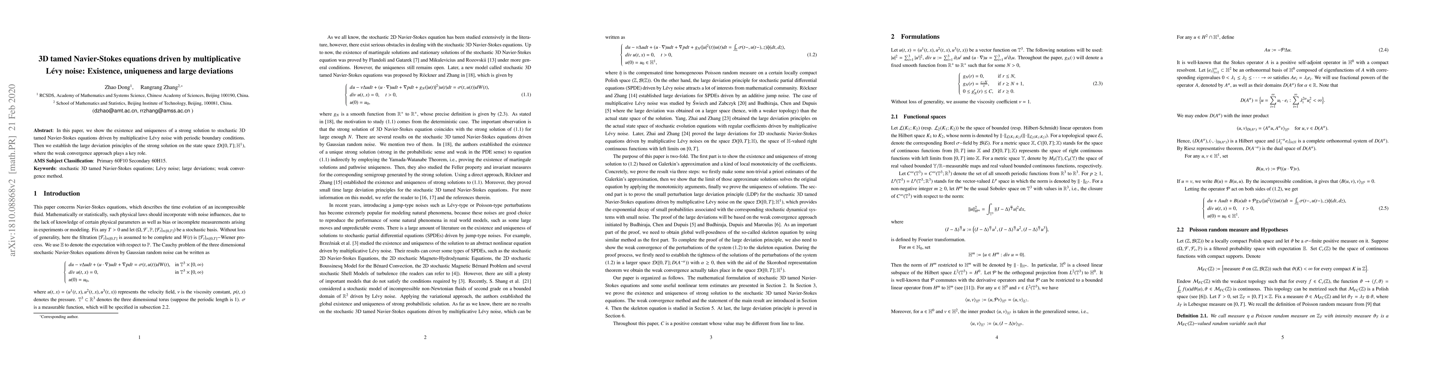 This paper proves the existence and uniqueness of a strong solution for stochastic 3D tamed Navier-Stokes equations driven by multiplicative Lévy noise, employing periodic boundary conditions. It also establishes large deviation principles for the solution, utilizing a weak convergence approach.
