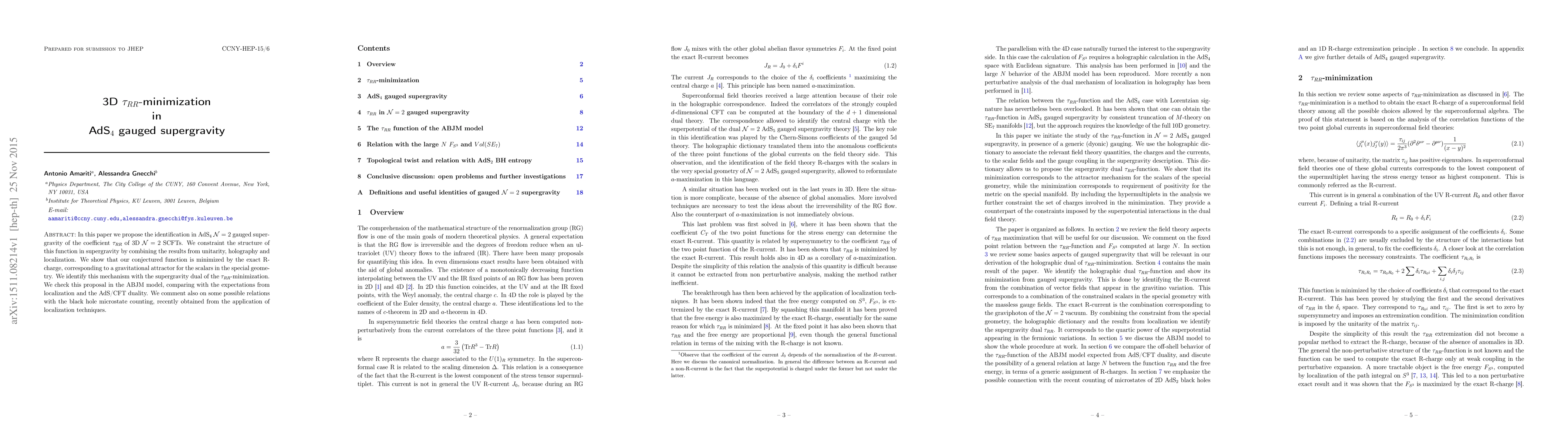 Researchers propose a method to identify the coefficient $ au_{RR}$ in AdS$_4$ gauged supergravity, linking it to R-charge minimization in 3D SCFTs.