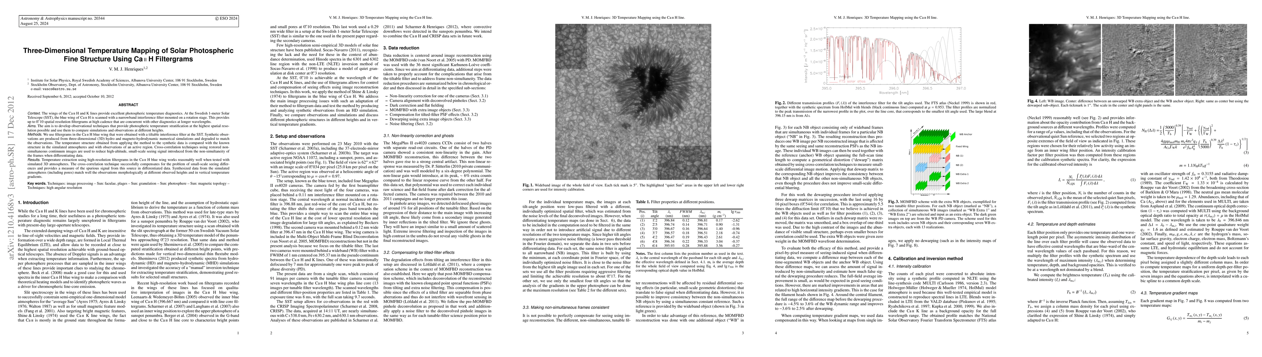 Context. The wings of the Ca II H and K lines provide excellent photospheric temperature diagnostics. At the Swedish 1-meter Solar Telescope the blue wing of Ca II H is scanned with a narrowband interference filter mounted on a rotation stage. This provides up to 0"10 spatial resolution filtergrams at high cadence that are concurrent with other diagnostics at longer wavelengths. Aims. The aim is to develop observational techniques that provide the photospheric temperature stratification at the highest spatial resolution possible and use those to compare simulations and observations at different heights. Methods. We use filtergrams in the Ca II H blue wing obtained with a tiltable interference filter at the SST. Synthetic observations are produced from 3D HD and 3D MHD numerical simulations and degraded to match the observations. The temperature structure obtained from applying the method to the synthetic data is compared with the known structure in the simulated atmospheres and with observations of an active region. Cross-correlation techniques using restored non-simultaneous continuum images are used to reduce high-altitude, small-scale seeing signal introduced from the non-simultaneity of the frames when differentiating data. Results. Temperature extraction using high resolution filtergrams in the Ca II H blue wing works reasonably well when tested with simulated 3D atmospheres. The cross-correlation technique successfully compensates the problem of small-scale seeing differences and provides a measure of the spurious signal from this source in differentiated data. Synthesized data from the simulated atmospheres (including pores) match well the observations morphologically at different observed heights and in vertical temperature gradients.