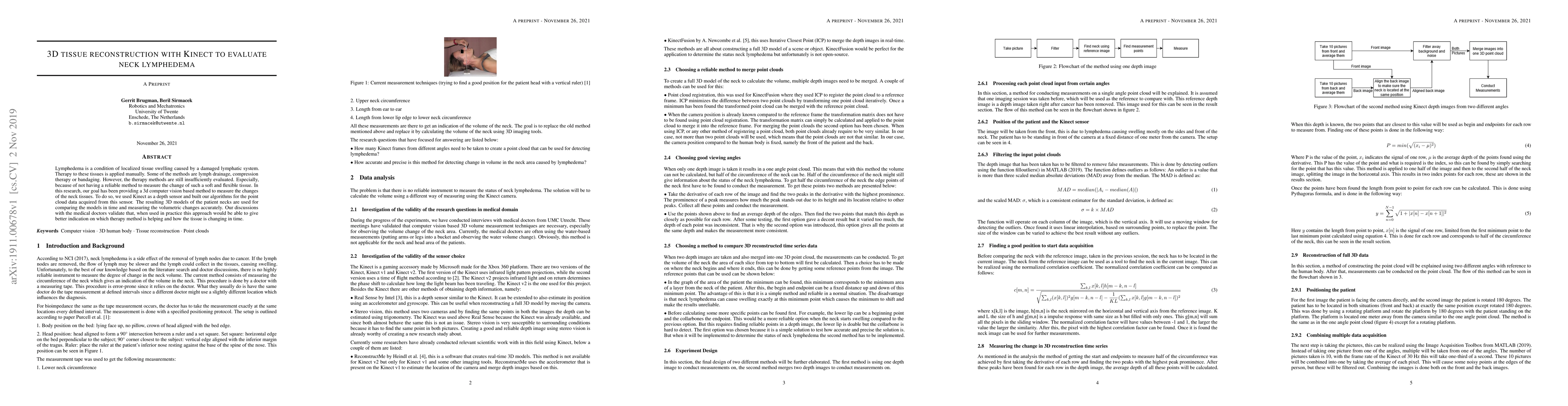Lymphedema is a condition of localized tissue swelling caused by a damaged lymphatic system. Therapy to these tissues is applied manually. Some of the methods are lymph drainage, compression therapy or bandaging. However, the therapy methods are still insufficiently evaluated. Especially, because of not having a reliable method to measure the change of such a soft and flexible tissue. In this research, our goal has been providing a 3d computer vision based method to measure the changes of the neck tissues. To do so, we used Kinect as a depth sensor and built our algorithms for the point cloud data acquired from this sensor. The resulting 3D models of the patient necks are used for comparing the models in time and measuring the volumetric changes accurately. Our discussions with the medical doctors validate that, when used in practice this approach would be able to give better indication on which therapy method is helping and how the tissue is changing in time.